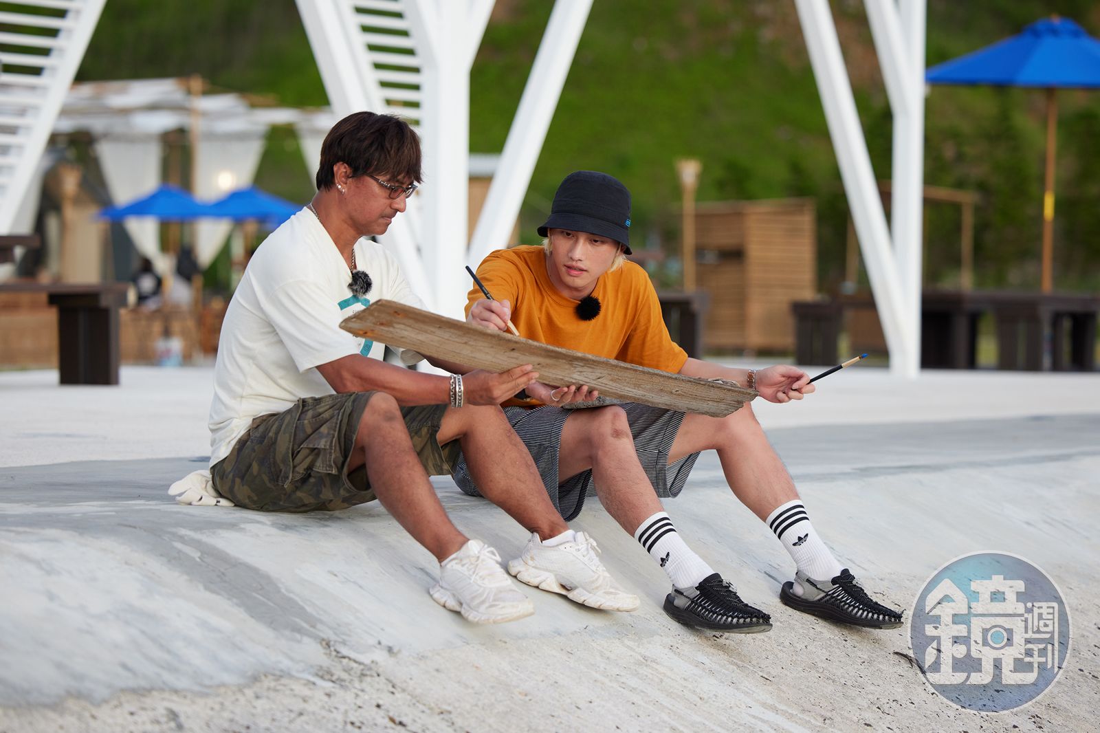 范少勳(右)、尤秋興(左)專注做看板。(灰人文化提供)發布時間:2022.10.27 12:01 臺北時間