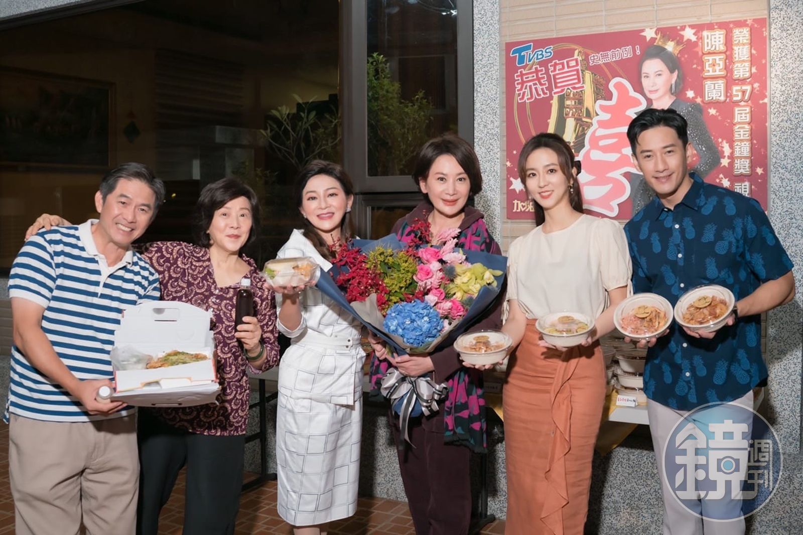 新科視帝陳亞蘭得獎後就立刻投入《加油喜事》拍攝,對於大家準備的驚喜十分感動,提到上個月《加油喜事》開鏡,安排她拿了「喜」字,果然「有拿有加持」一舉拿下金鐘獎,她笑說:「其他的影帝,不好意思,先讓我一下,下一屆換你們啦!」昨天(26日)是陳亞蘭得獎後與閨密王彩樺首度碰面,王彩樺說:「今天大家看到亞蘭姐,握手、擁抱不夠,還有吸她的氣,把她的喜氣都吸過來。」陳亞蘭霸氣回應:「來!明年才換人,一年夠你們吸!」