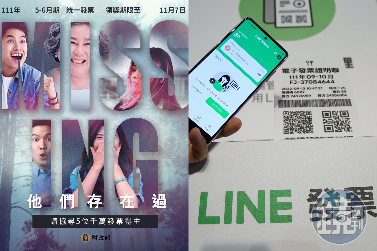 財政部昨晚在臉書發布「尋人啟事」,協尋5位千萬得主,財政部指出,111年5、6月的統一發票,最後領獎期限僅到11月7日,不過還有5張千萬特別獎沒人領。