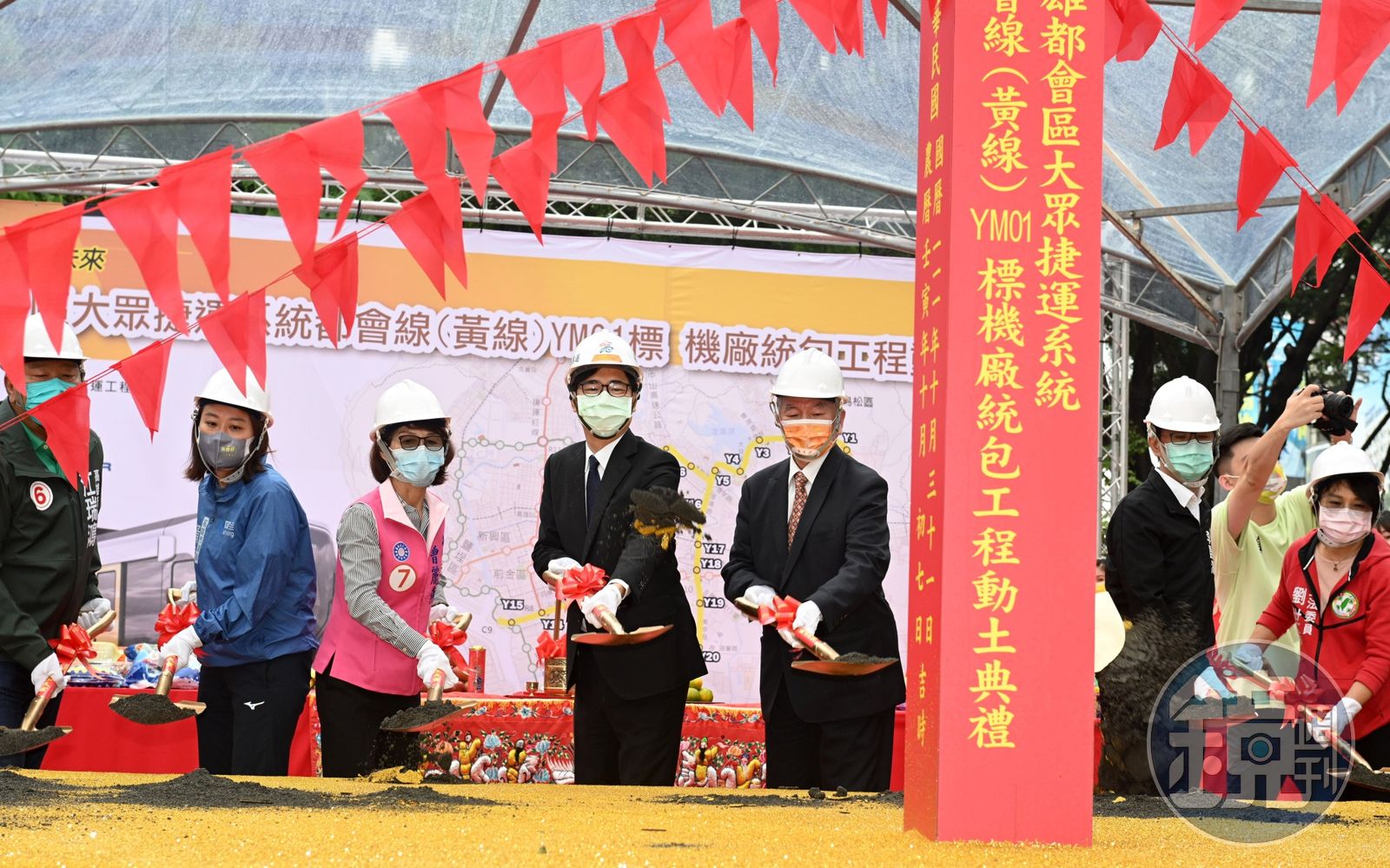 陳其邁表示,今天捷運黃線YM01標機廠統包工程動土,是高雄市綠色交通重要的一環,也會跟紅、橘線、輕軌、台鐵,形成格狀的路網。捷運黃線總長約22.91公里,共22座地下車站、1座高架車站,行經鳥松區、三民區、苓雅區、新興區、鳳山區、前鎮區等6區;總服務人口共約116萬人,占高雄市總人口約41.8%。