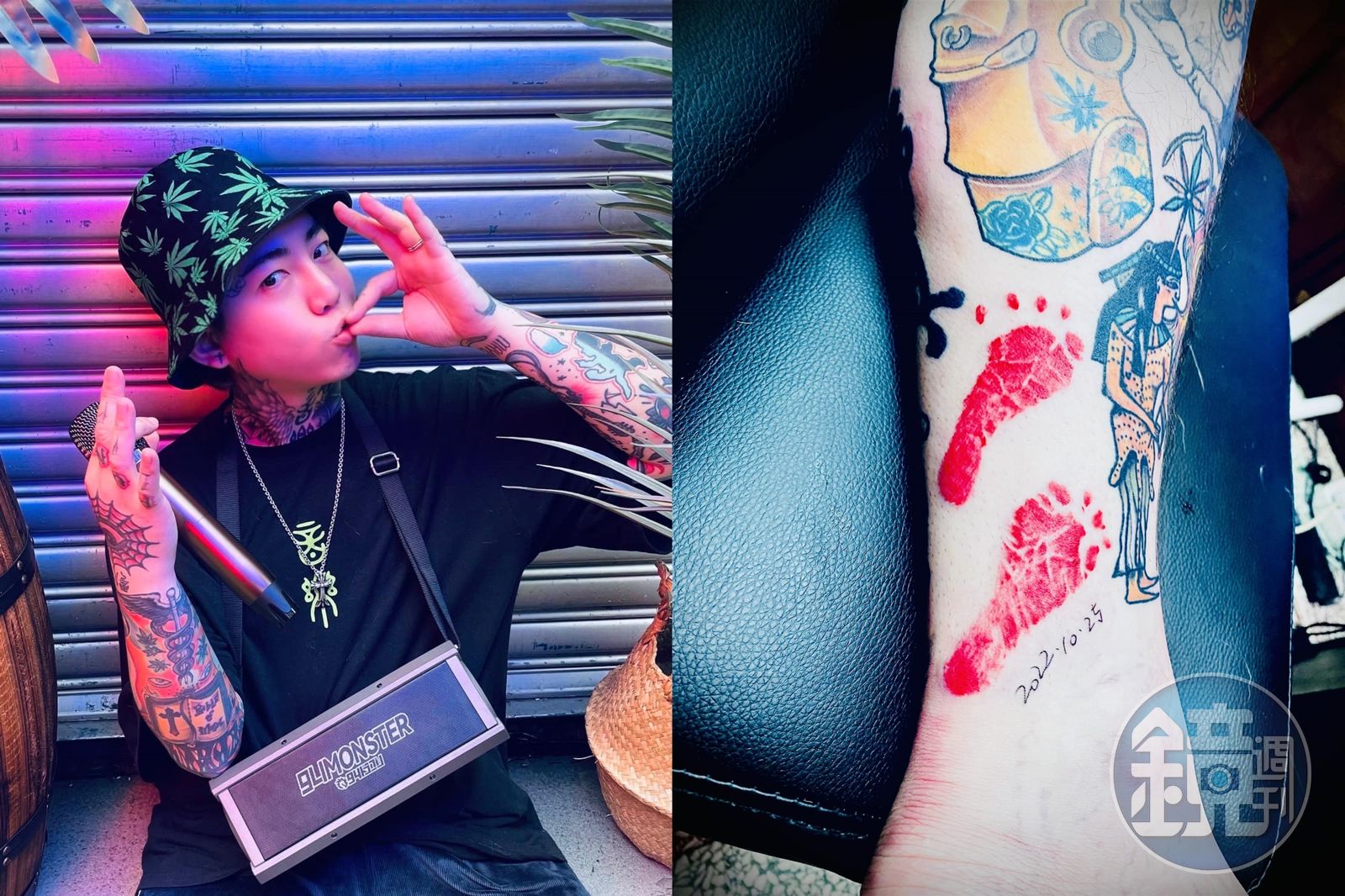 「這就是我女兒的小腳丫,超可愛的,一根手指長。」當下謝和弦在刺青店開直播,語氣滿是當爸爸的喜悅與驕傲語氣;如今謝和弦的左右腳可以湊一對,左邊是小孩、右邊則是毛孩。