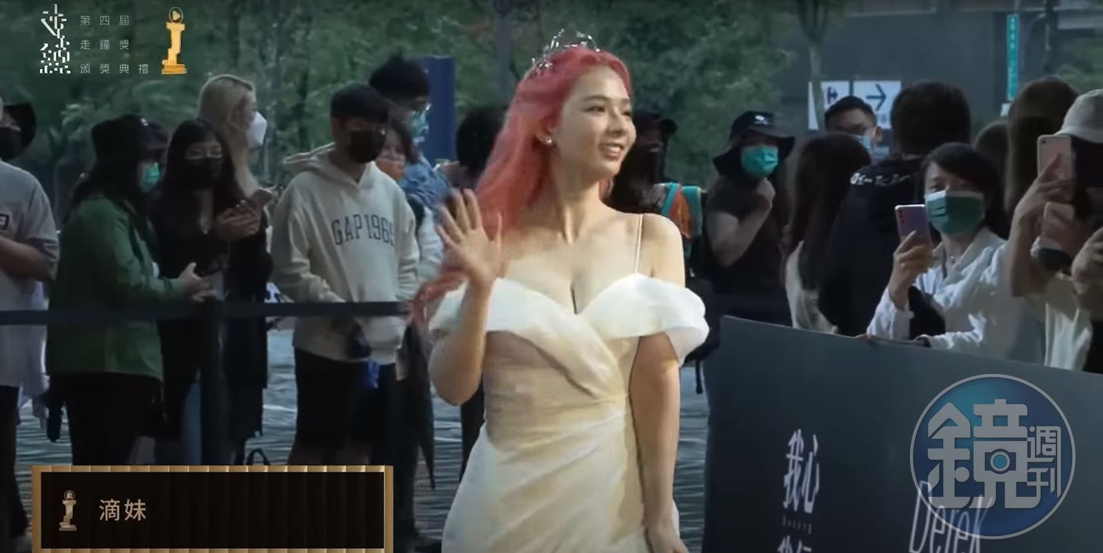 本屆走鐘獎滴妹入圍了「吉祥物獎」「無情工商獎」,她穿爆乳禮服出席,大方秀出好身材,雖然最終沒有得獎,但她仍在昨日發文恭喜所有得獎者,對於台灣YouTube越來越茁壯感到開心與驕傲,未來會繼續努力拍片。