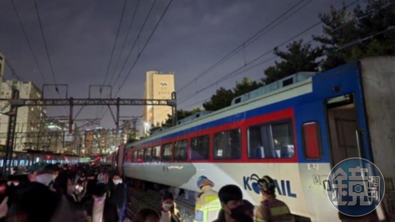 《韓聯社》報導,韓國鐵道公社(KORAIL)指出,當天晚上8點45分,自首爾龍山開往全羅北道益山的列車發生意外,有六節車廂出軌,車上共有279名乘客,有34人受到輕傷,其餘乘客則步行撤離到永登浦站。