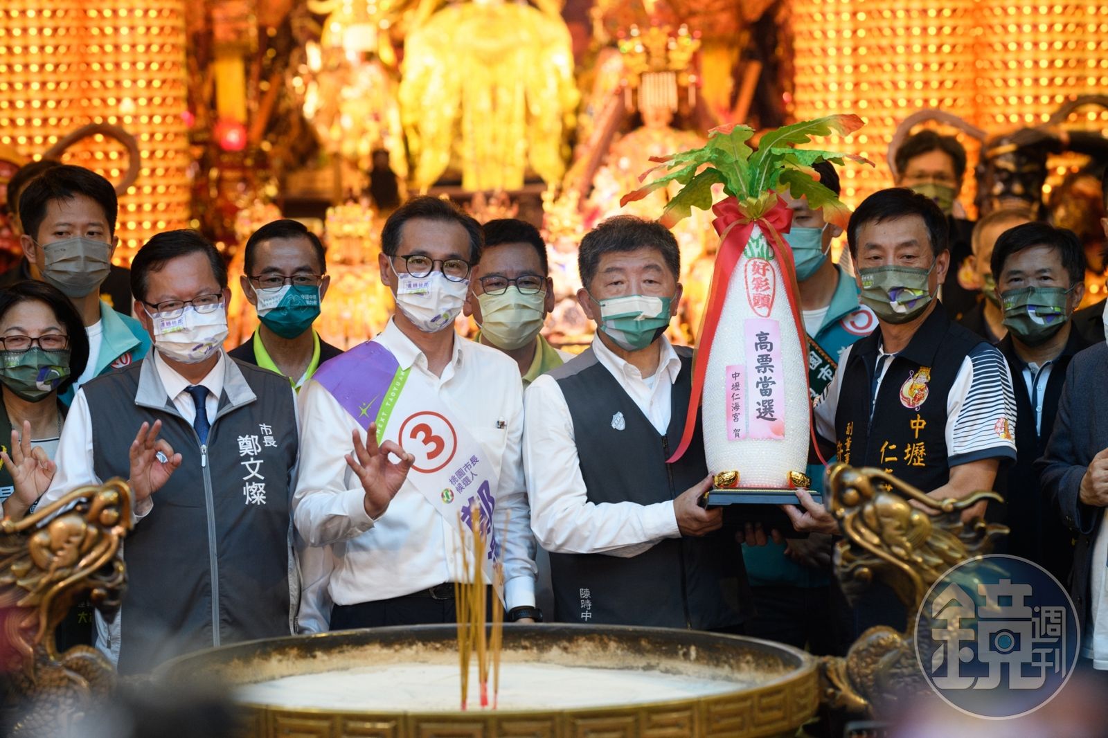 陳時中今與鄭運鵬一同在中壢區掃街,展現綠營團結氣勢。陳時中表示,桃園在鄭文燦五星級的市長領導之下讓他們深得愛戴,鄭運鵬過去在立法院時期擔任民進黨團的幹事長,在衛福部的政策溝通上幫了很大的忙。鄭運鵬也說,他在當第六屆立委時,陳時中就是衛生署副署長,他們一起並肩作戰到現在,一起推動重大建設,形同戰友,「我相信台北市是國家門面,桃園市是國家門戶,台北市是首都,需要一位有承擔能力,需要一位勇於突破困難,有肩膀的好市長,不能選到一位在路邊如果遇到突發狀況就愣住的一個市長,所以我跟陳時中部長我們突破了這個疫情的困難,一起合作了這些包含食品安全等各項政策的困難。」