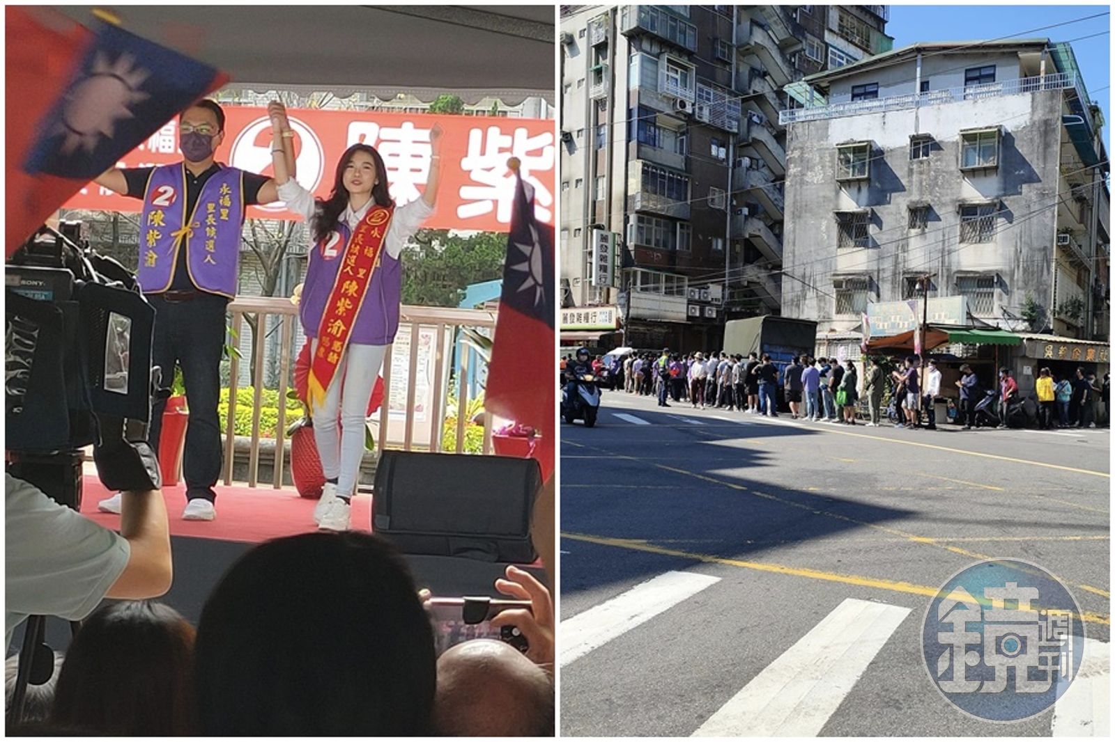 結果今天陳紫渝還未現身,其母校永和國中門口早已萬人空巷,人潮多到隊伍延伸至附近巷弄,人龍中多半是年輕臉孔,可見「最美里長候選人」人氣名不虛傳,粉磚逾13萬的按讚數不只是網路聲量,更能化為實際政治實力,直到茶會結束仍有大批粉絲爭相合影。