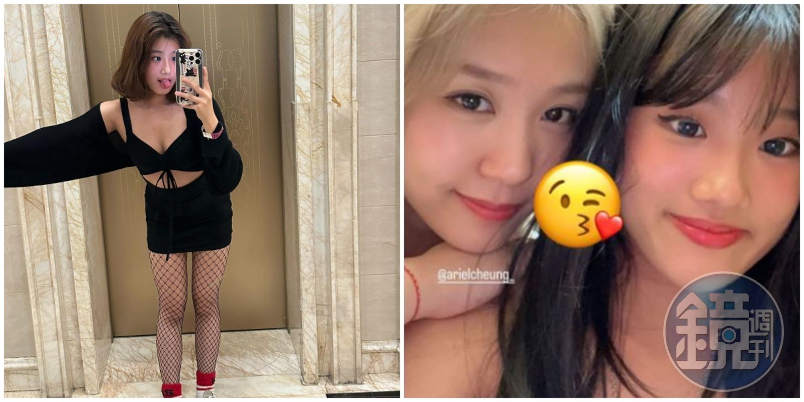Ariel今年8月5日貼出與林志玲緋聞男友,有馬桶小開之稱的邱士楷的結婚照與結婚證,年齡相差逾10歲的兩人,戀愛2年後決定廝守終身。 (翻攝IG@arielcheung_)17歲的梧桐妹相當熱衷經營社群,不僅常常在IG曬出性感打扮的照片,也時常跟網友互動,偶爾除了家人外,她也會放上與朋友的合照。近日她在IG限時動態中貼出與一位金髮女子的臉貼臉的合照,照片中可見梧桐妹畫上濃妝,穿著細肩帶背心,與染著一頭金髮的大眼女子臉貼臉,顯見兩人關係要好。