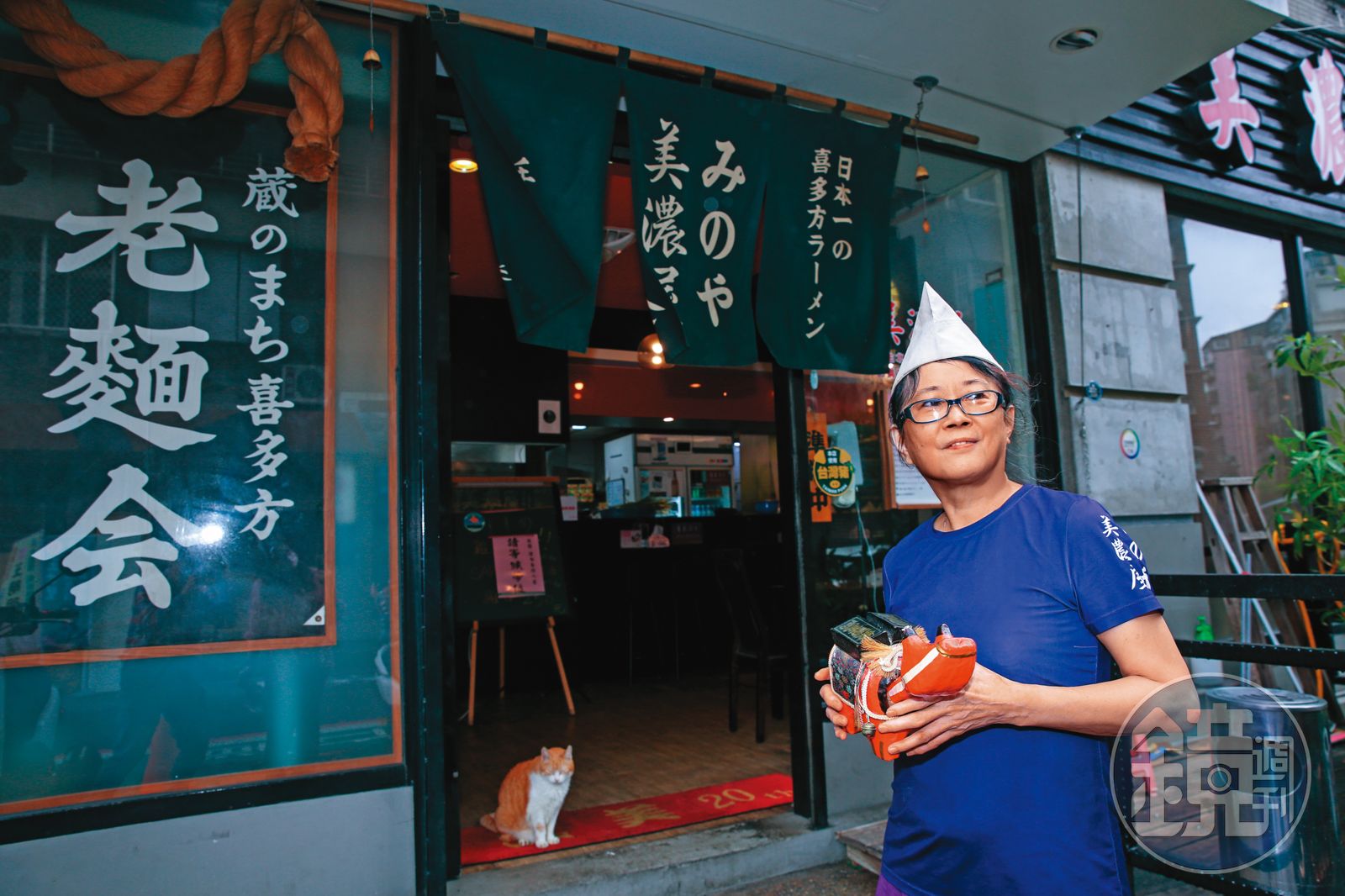 秋末,不到5點天色已暗,北市林森北路107巷林立的酒吧多數尚未營業,略顯冷清,獨獨巷子最前端的美濃屋燈開得通亮。老闆娘陳秀珠熟練地將遠從日本帶回的藍染布招牌暖簾掛上,「每天都在升旗、降旗,24年了。日本有歷史的店家都是這樣。」一旁的「老麵會」布幔同樣是遠渡重洋而來,珍貴到陳秀珠花7萬元把它嵌進強化玻璃裡保存。