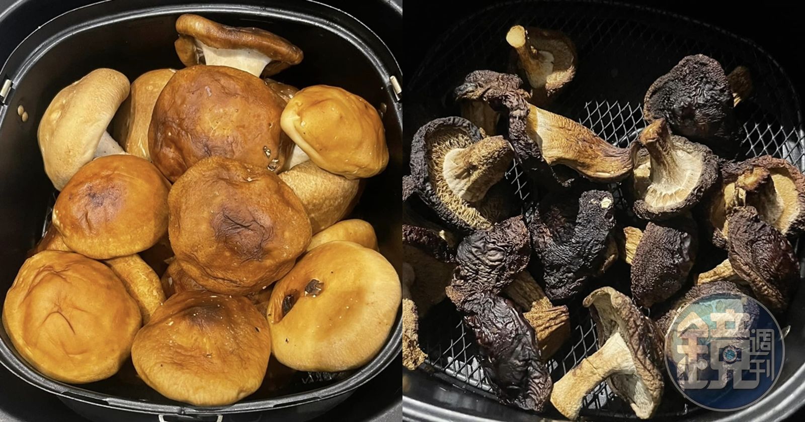 該名女子並分享「乾香菇」的製程,不清洗香菇直接把香菇丟進氣炸鍋,設定100度/40分鐘;接著打開來檢查乾燥狀況,再用100度烘20分鐘;第二次打開放冷後,再用100度烘20分鐘,她也提醒因為每次買的香菇大小、厚度不同,建議不要一次烘到底,至少要觀察香菇的濕度及硬度1至2次。