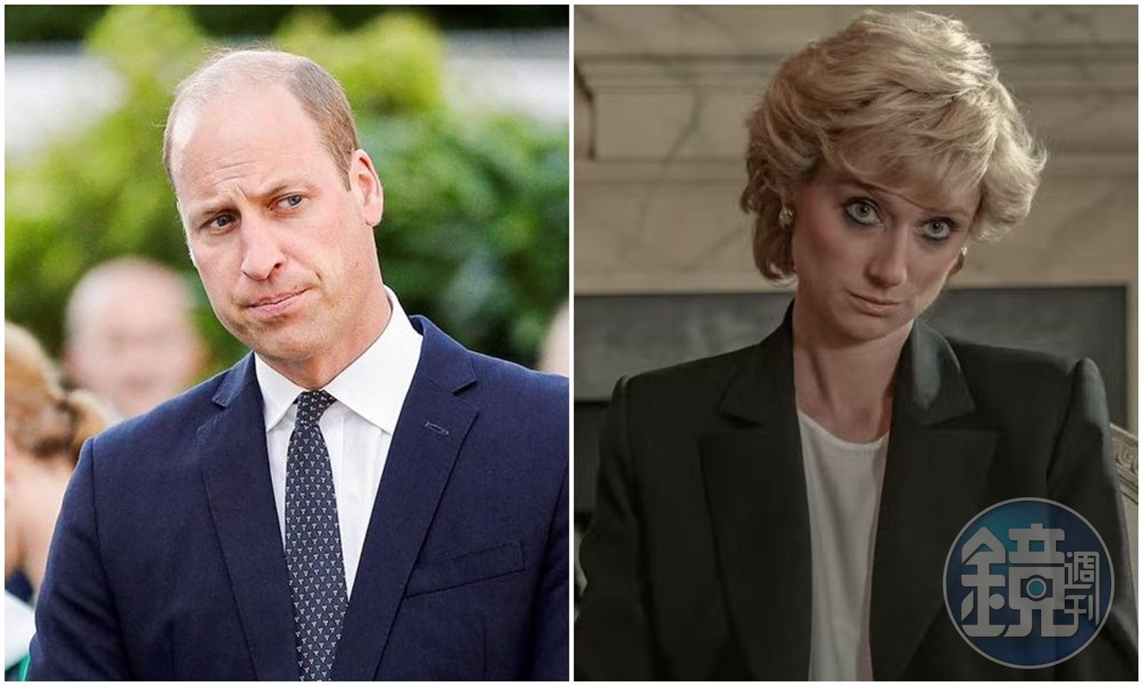伊莉莎白戴比基(右圖)在《王冠》詮釋黛妃的世紀專訪,據悉威廉王子(左圖)很不滿。(翻攝Netflix、KensingtonRoyal推特)發布時間:2022.11.16 17:11 臺北時間