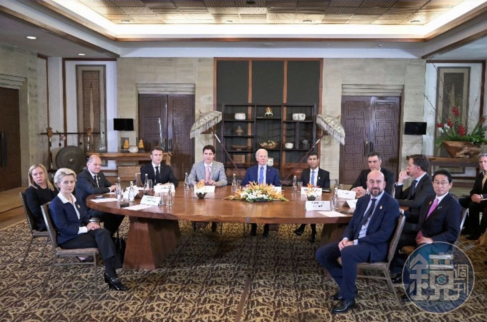 歐盟執委會16日針對NATO與G7成員國領袖的G20場邊會議發出聲明,「加拿大、歐盟執委會、歐洲理事會、法國、德國、義大利、日本、荷蘭、西班牙、英國和美國的領導人,今天在峇厘島的G20峰會期間會面,並做出以下陳述:我們譴責俄羅斯週二對烏克蘭城市和民用基礎設施所實施的野蠻導彈襲擊。」