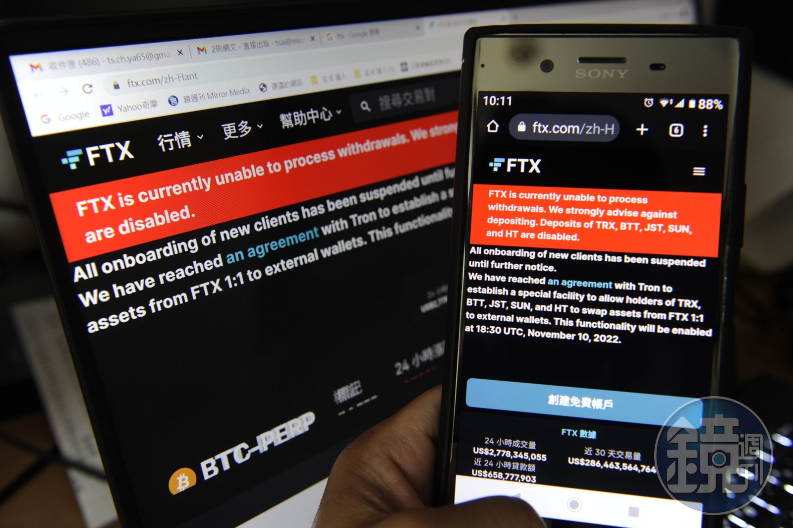 全球第二大加密貨幣交易所FTX突然破產,導致所有使用者在該平台存放的虛擬幣完全拿不回來。