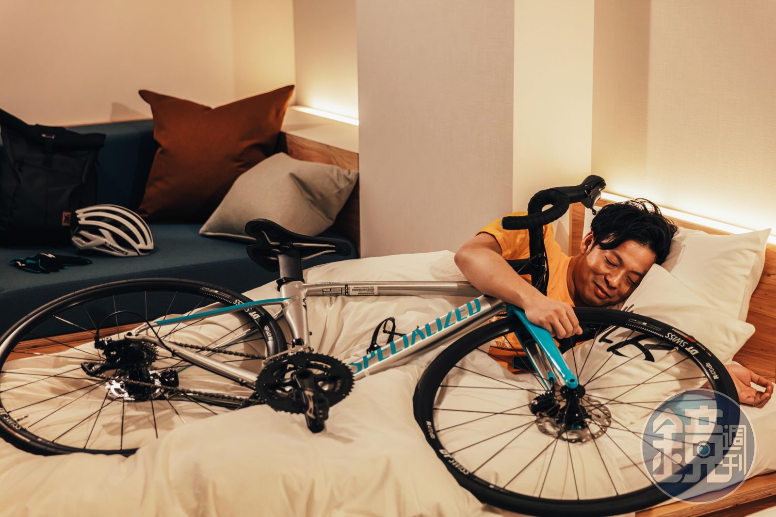 既然以自行車為主題,旅館內的走道都較一般寬敞,方便隨意移動單車。館內特別設置「單車空間」,提供各種修車工具、洗車產品,甚至還備有車鞋乾燥機,方便車友們整理車輛。如果你一刻也不想離開你的愛車,那就訂一間「單車客房」,不但可以直接把單車騎進房間裡,還能把車子掛在牆上慢慢欣賞。