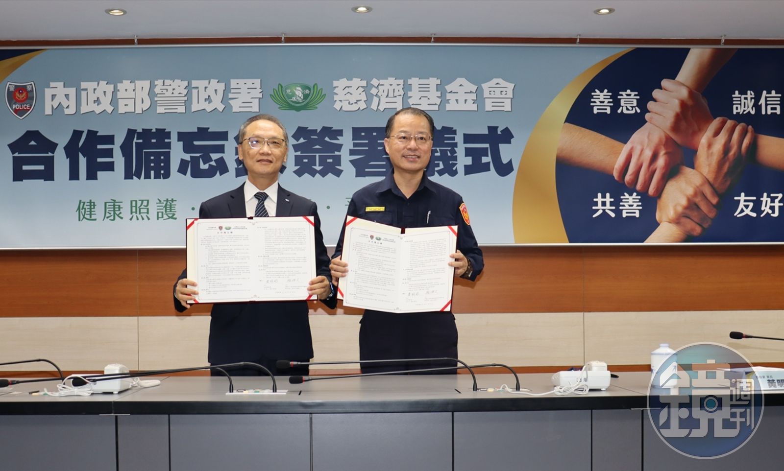 而針對預防宣導,則共同提升社會犯罪預防意識與促進交通安全觀念,警政署可提供相關支持資源,慈濟可協助透過志工、家庭、社區、學校、醫療院所及媒體宣導等,共同守護維持社會共好共榮的願景,未來雙方也合意推動環境保護、健康蔬食、人文理念等公益事項。