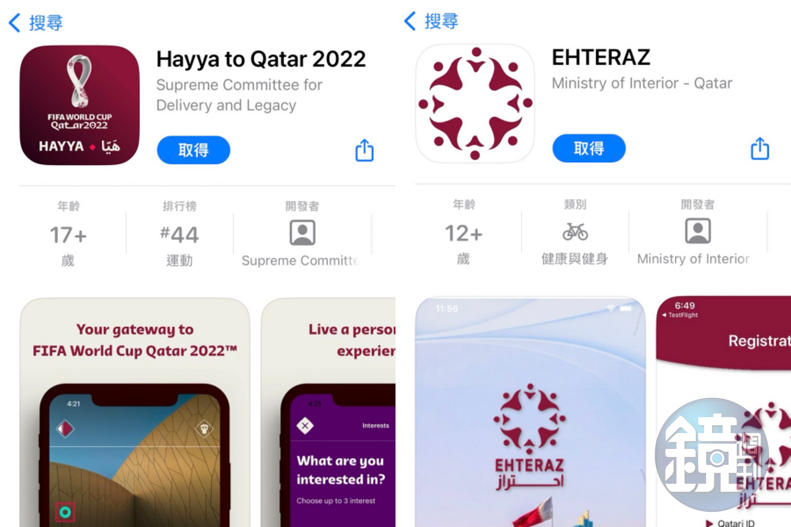 卡達世界盃正式開幕,全球觀眾都高度關注,更有不少人直接飛往當地共襄盛舉。不過遊客前往卡達需要下載2個App,一是用於新冠肺炎(COVID-19)防疫追蹤的「Ehteraz」,另一個則是管控球迷進出球場、看比賽與搭乘大眾運輸交通工具的「Hayya」。