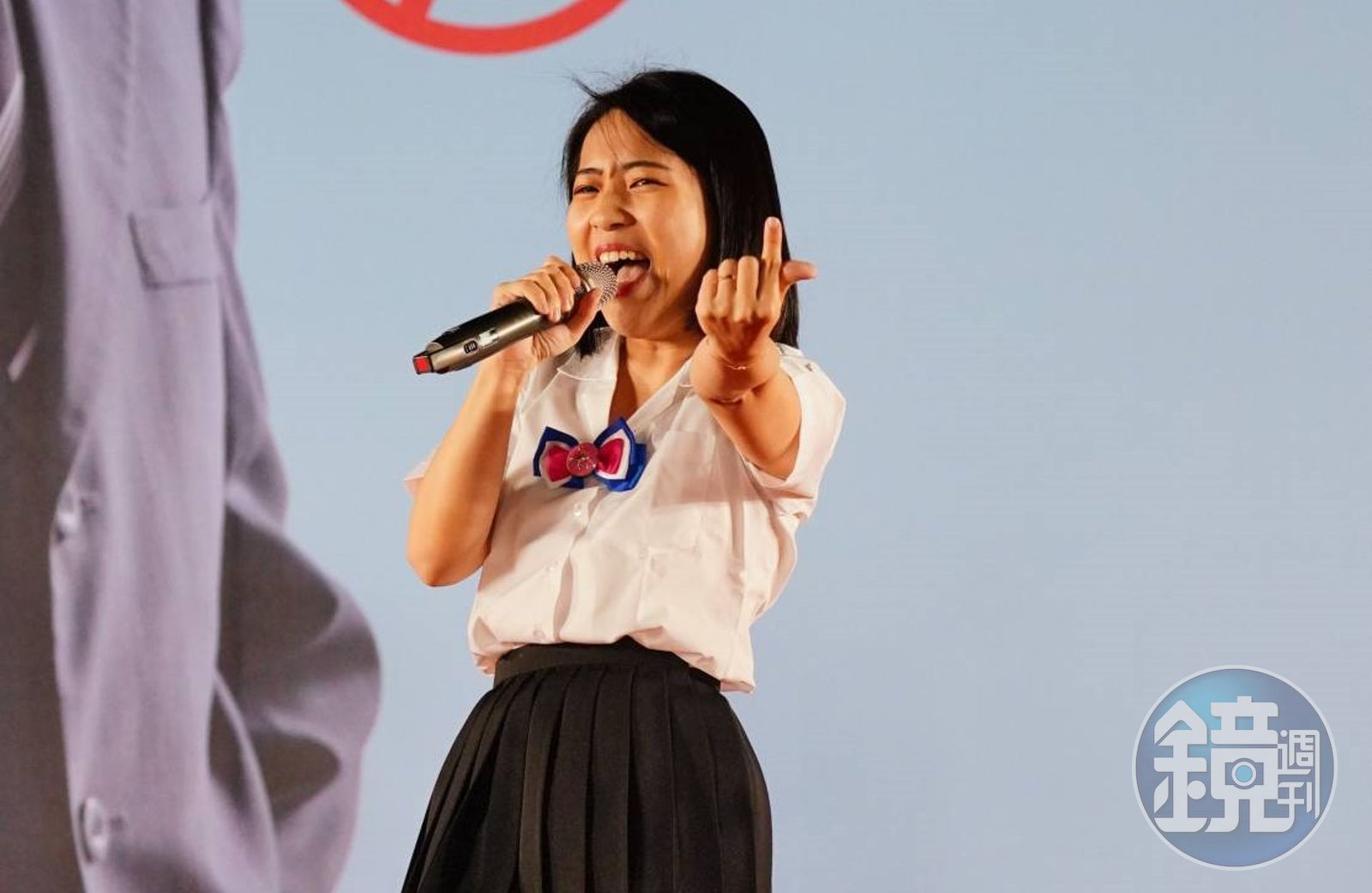 徐巧芯昨出發前就預告,自己為了這場活動準備了表演,練到滿頭大汗。晚上現身餐會現場時,徐巧芯特地換上一身學生制服、黑色絲襪,拿起麥克風在台上高唱王心凌的〈愛你〉,搭配歌曲的經典舞蹈動作當然也不能少,又唱又跳十分賣力。