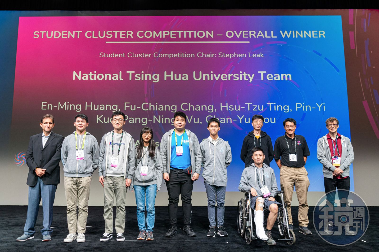 同在達拉斯代表台灣參加SC高速計算會議的國研院國網中心主任張朝亮及雲達科技研發長張文祥也到場為清華團隊加油打氣,一同分享榮獲世界總冠軍的喜悅。