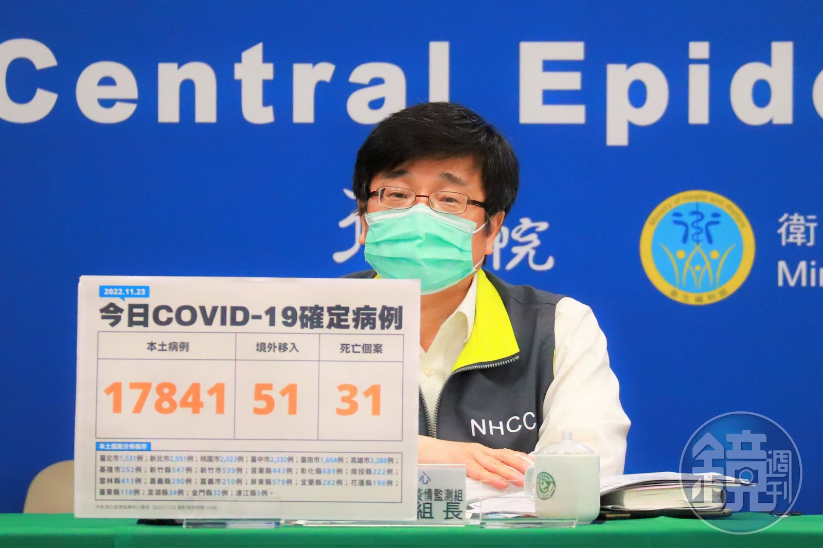指揮中心指出,今日新增31例本土病例死亡個案,為20例男性、11例女性,年齡介於40多歲至90多歲以上,皆屬重度感染、29例具慢性病史、18例未接種3劑以上COVID-19疫苗。確診日介於今年8月30日至11月18日,死亡日期介於9月19日至11月20日。