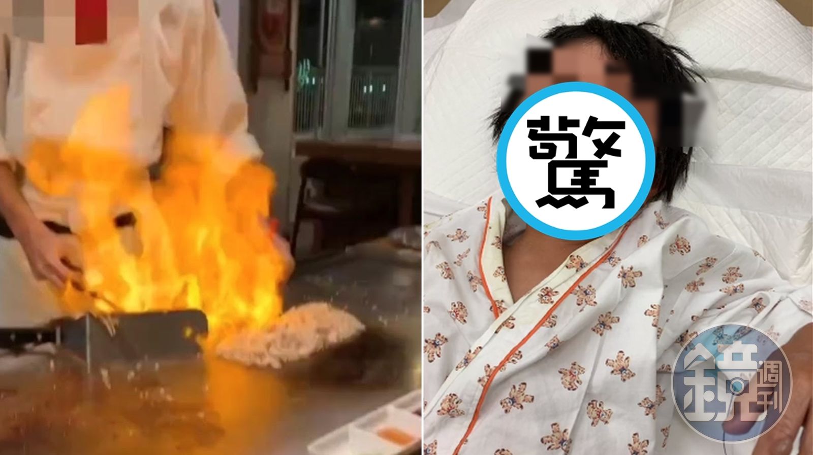知名鐵板燒餐廳驚傳燒傷客人意外!一名爸爸帶5歲男童用餐時,欣賞廚師表演點火秀,不料火焰太猛烈直接延燒到用餐的父子,兩人隨即被緊急送醫皆有灼傷,幸好無生命危險。