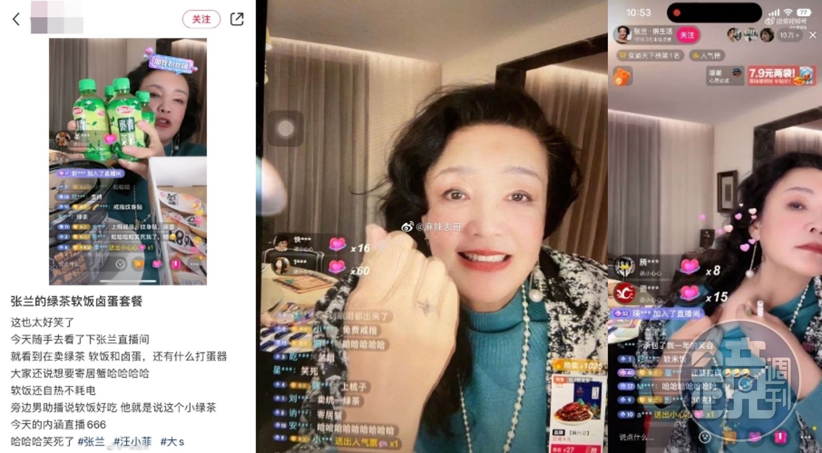 不僅如此,就連助理也加入說:「我要吃會兒軟飯了,麻六記的煲仔飯真好吃真軟。」有網友提議「明天賣床墊」,張蘭也一口答應:「好勒!今天晚上夜裡加班。」