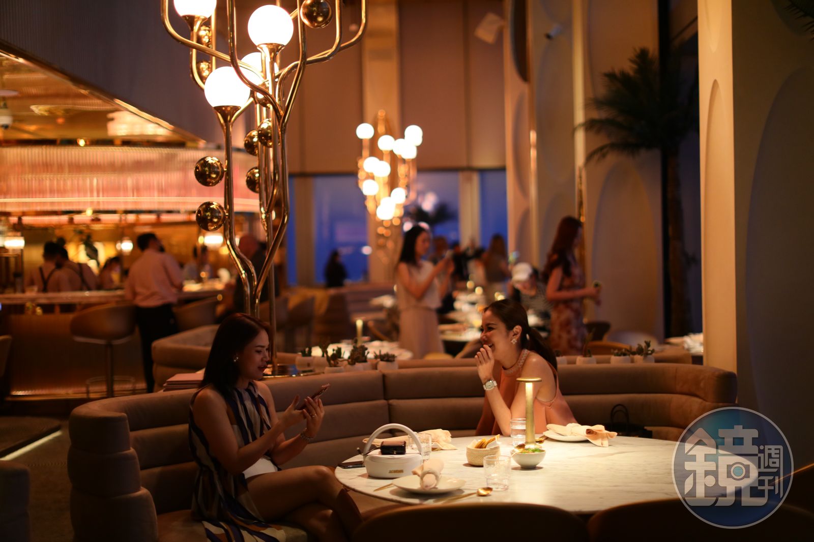 「Ojo」發音為「o-ho」,在西班牙文中有「眼睛」之意,走進其中,我倒真有目不暇給的感覺,電梯門一打開,目光所及是金屬色調、閃閃發光的寶石牆,窗外就是華麗夜景,也能直接坐在戶外小酌賞景,為曼谷的夜生活再添一筆濃豔色彩。
