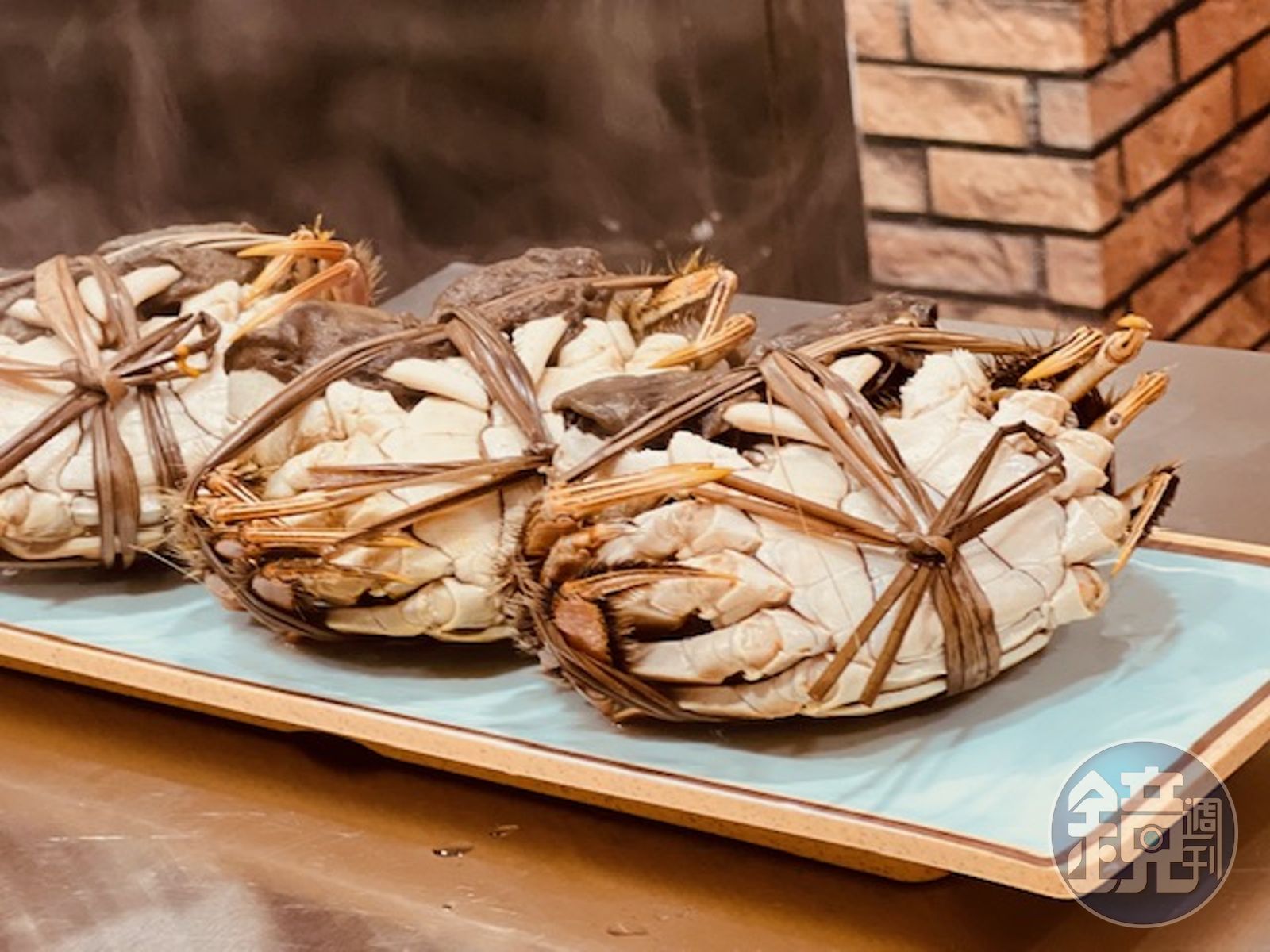 繞過匾額走進店裡,是一個擺了幾張桌子的小小空間,最多只能容納20人同坐,後方是簡易的廚房空間與洗手間,我們之前先預訂了每人2隻6兩蟹,人到齊了,廖老闆就開始煮蟹。這個動作讓我看得很好奇,以前採訪的大閘蟹都是清蒸居多,但廖煌飛認為他的蟹用水煮最能表現美味。