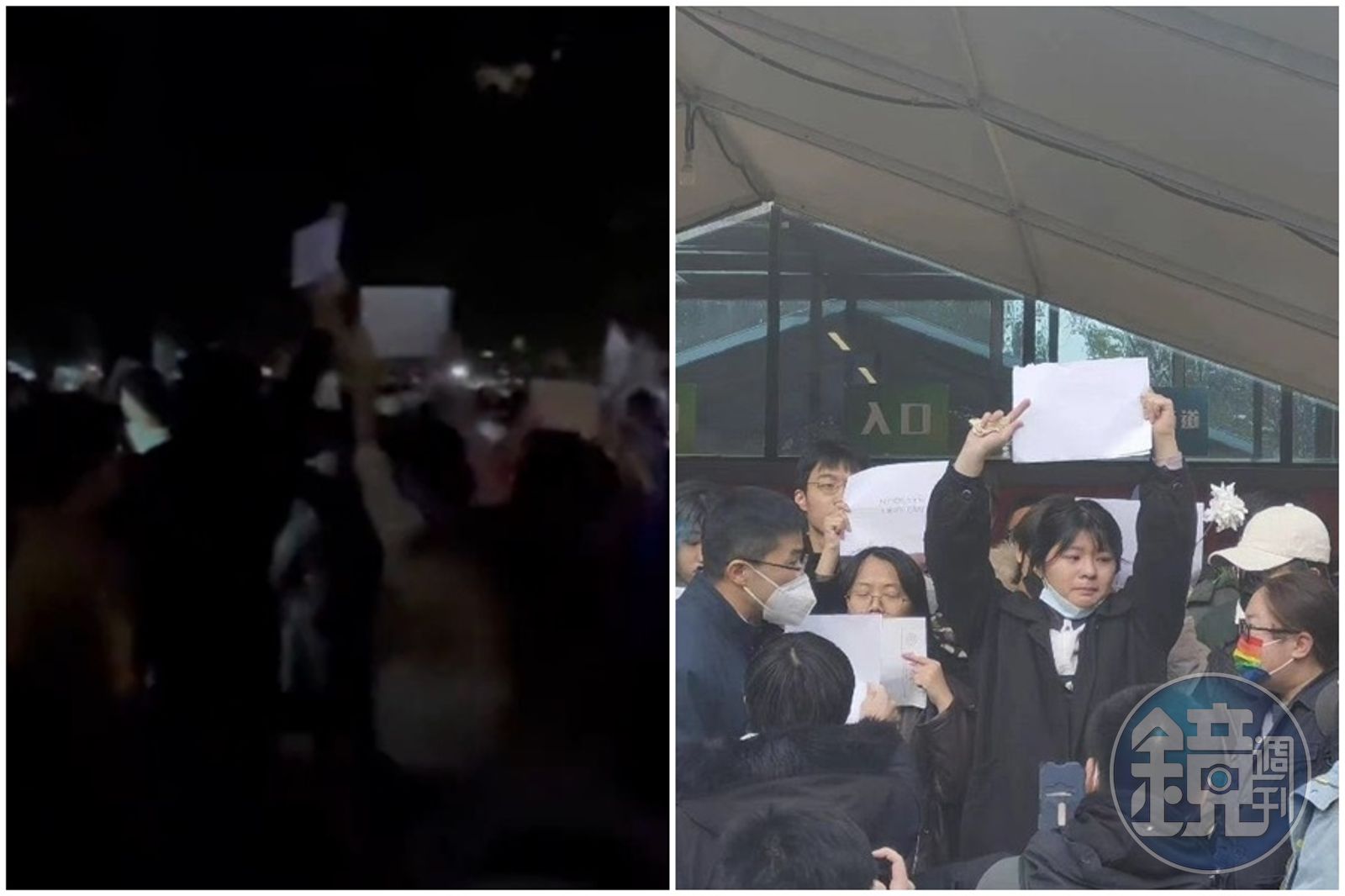 最終中國官方處理態度,讓民怨四起並將民眾情緒累積到最高,「白紙革命」就此爆發,不少中國人紛紛拿起白紙,走上街頭表達他們對官方封控措施與無法自由表達言論的不滿。有抗爭者表示,「雖然白紙上什麼都沒有,但是我們都知道在說什麼」。