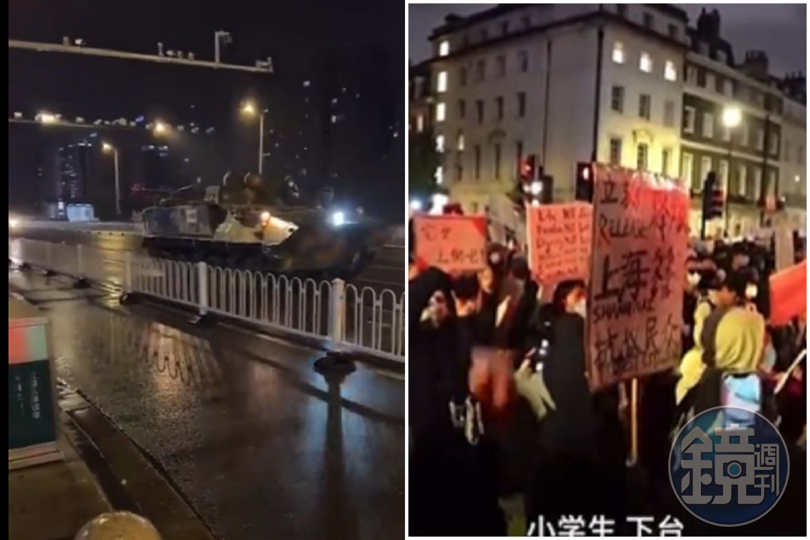 雖然目前中國民怨抗議遍地開花,但不少人也擔心,中共下一步會出什麼招來「對付」這些抗議群眾。就有民眾直擊,在徐州的大馬路上看見多輛軍事裝甲車魚貫進城,因此有人猜測,這些裝甲車是否要進入上海,是否會有「升級行動」。