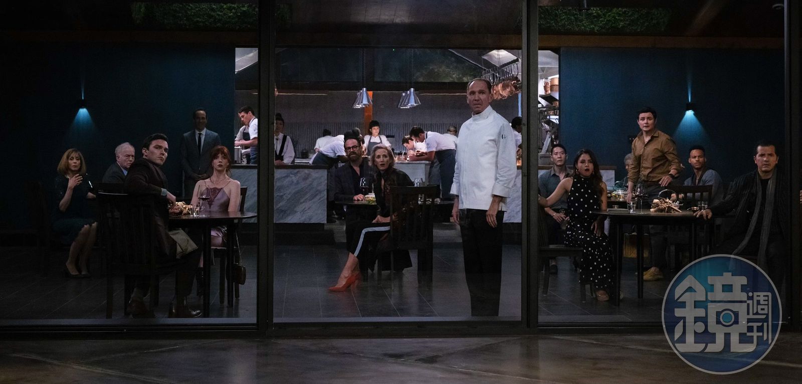 片中雷夫范恩斯詮釋一位全球知名的廚師朱利安,無數人搶破頭想上他的餐桌,導演馬克梅羅德為這個角色編造了一個完整的背景故事,朱利安一直把做菜視為藝術,但是藝術的純粹性卻被富裕卻不懂美食的客人玷污了,「他開始厭惡菁英消費者,甚至也討厭自己,他是一個完美主義者,必須不斷為那些從未真正欣賞他手藝的人保持完美水準,偏偏這些人貪得無厭。」於是朱利安想出一張絕妙的菜單,讓他的「貴客」享受整個生態系統的美食之餘,還能受到如夢魘般的人性洗禮。