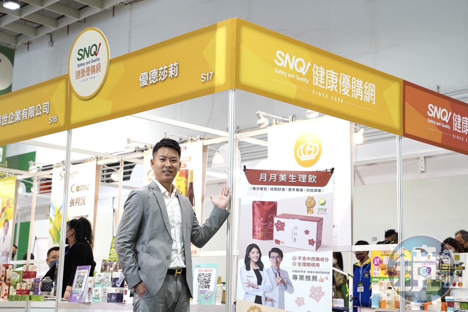 健談公司董事長林鈺軒以旗下婦科保健領導品牌「優德莎莉」參加2022台灣醫療科技展。(健談公司提供)