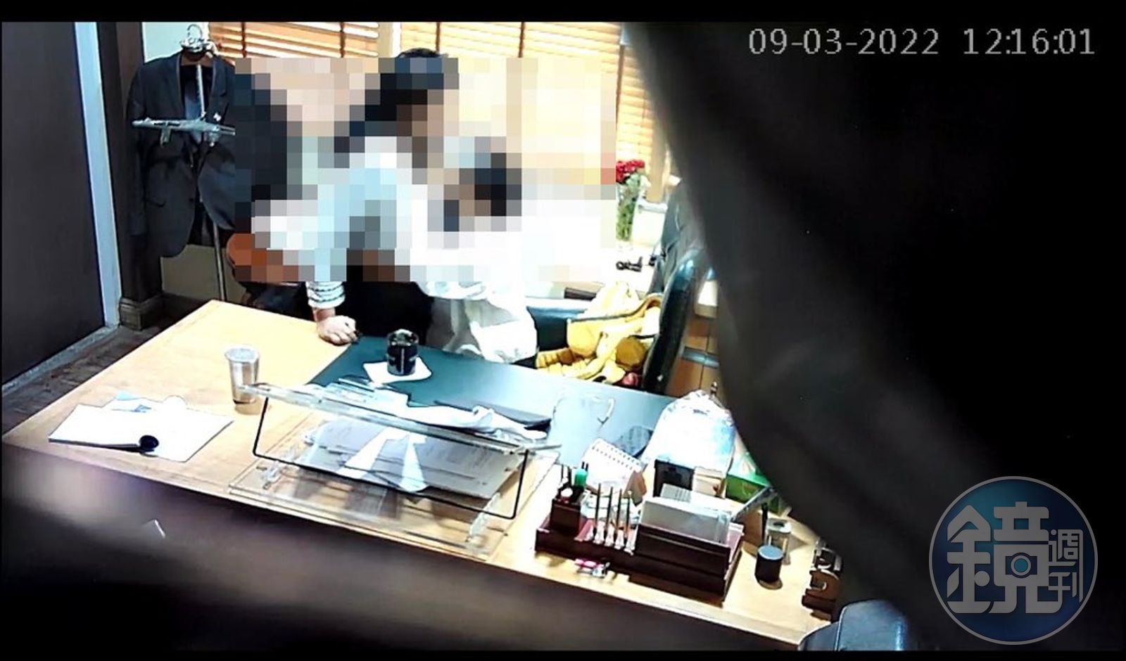隨後米許拉站起來強吻女職員,還拉開對方的褲頭,疑似想要扒下褲子進行下一步來洩欲,但對方嚇得倒退好幾步,米許拉才就此作罷。性騷擾女職員後,米許拉整理自己的儀容後又拍拍座位,裝作沒這回事。