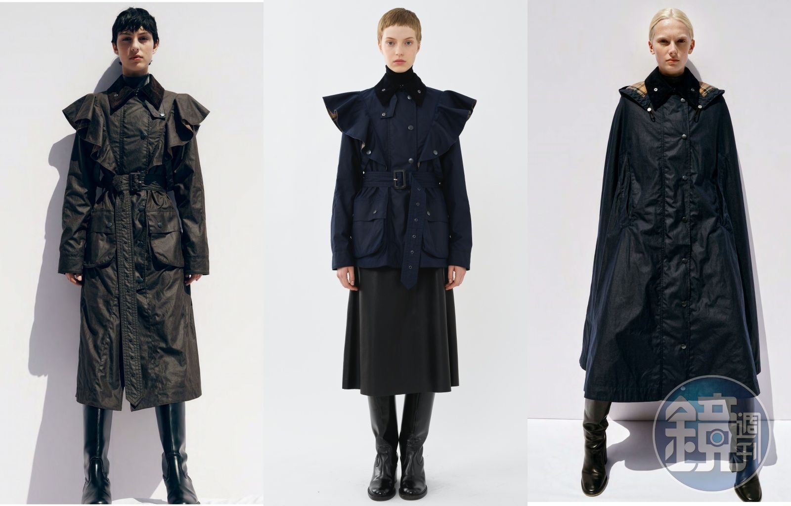 Barbour x Chloé Mallo長筒靴。NT$46,200(Chloé提供)Barbour x Chloé Edith托特包。價格未定(Chloé提供)膠囊系列參考了Barbour的百年典藏,並由Chloé設計,Barbour生產:本系列涵括三款成衣,包括Dany油布風衣、Dustyn夾克和Hadrien斗篷;風衣和夾克的肩部使用了荷葉邊設計,標誌著Chloé 獨有的廓形。