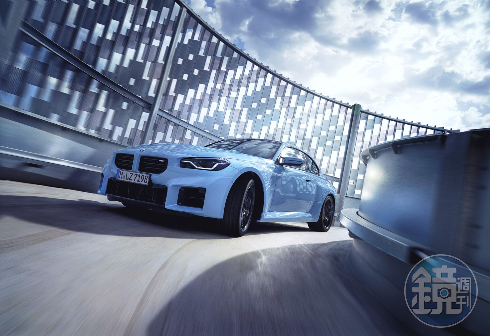 以更運動化且充滿競技肌理線條的暴力美學設計佔領眾人視線,全新專屬BMW M2的雙腎型橫柵式水箱護罩採無邊框設計,搭配大面積的矩形下氣壩與兩側進氣口,充滿賽車跑格且兼具優化空氣力學與冷卻效能。向經典車款BMW 2002致敬的頭燈造型,同樣以矩形輪廓融合於前保桿設計中,搭配光型變化智慧LED頭燈及遠光燈輔助功能,夜晚中以銳利目光提供駕駛更安全的照明科技。