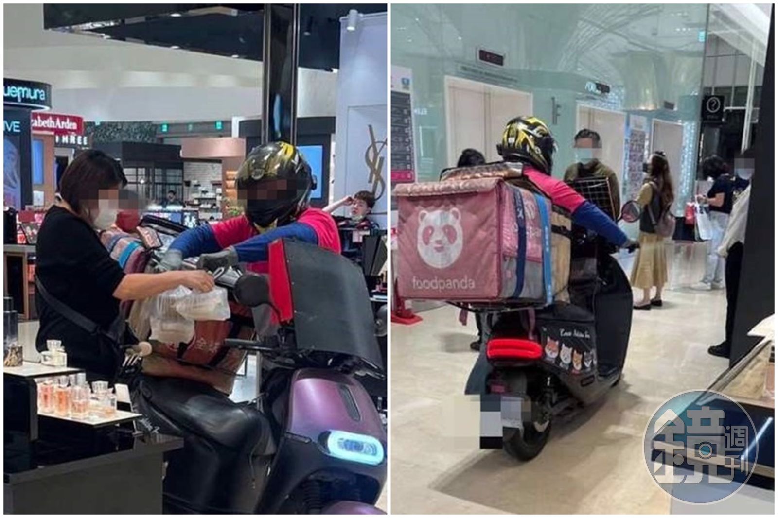 一名網友在「外送員的奇聞怪事」臉書社團中發文附圖表示,只見一名外送員騎著電動機車進百貨公司內,並把車子停在1樓某化妝品櫃位旁,將餐點拿出來疑似是櫃姐的顧客;原PO表示「大哥你是我的偶像、使命必達、不知道為什麼有一種吐了怨氣的感覺」等語。