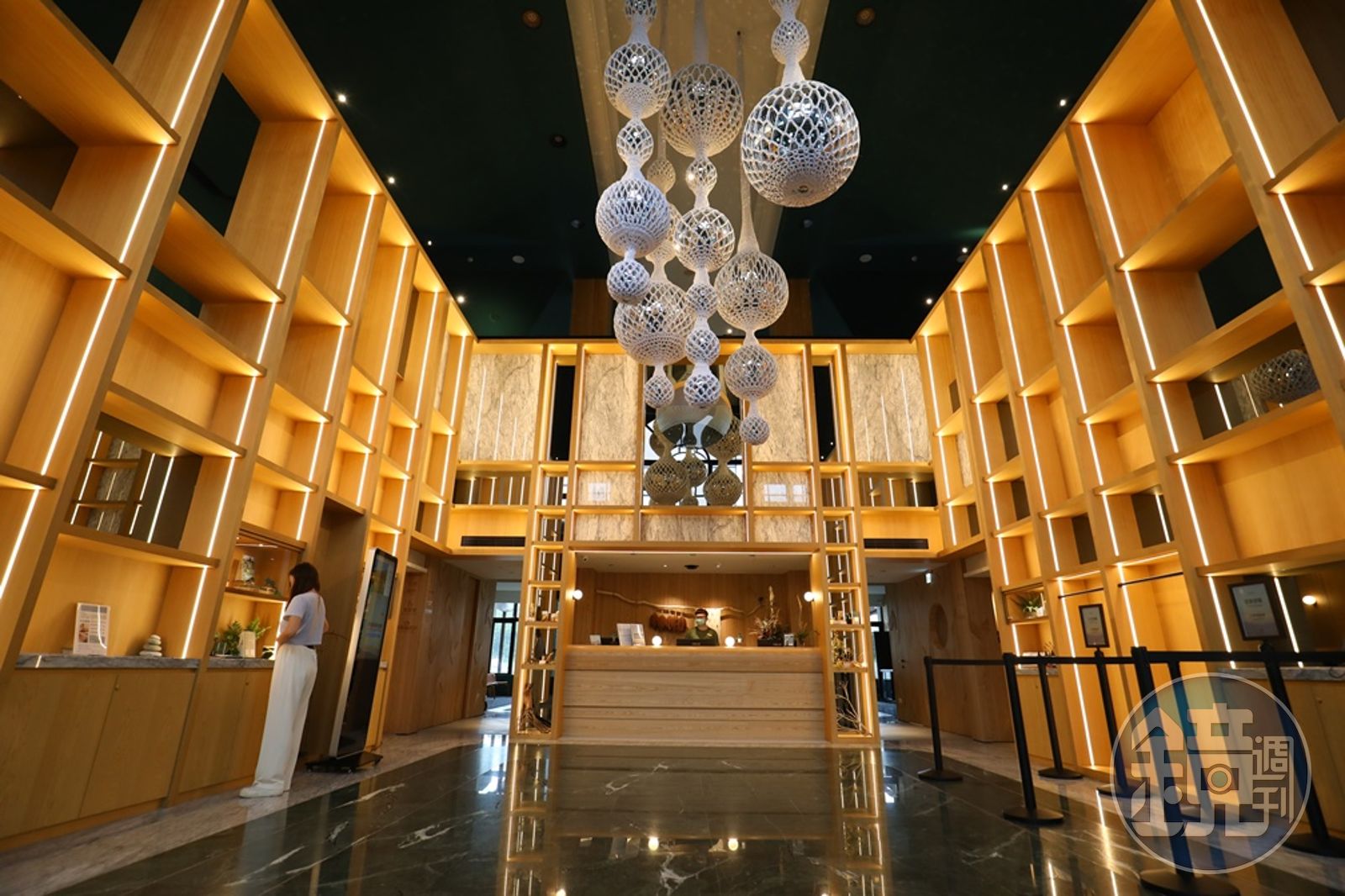 一走進大廳森林香氣撲鼻而來,氣派的大廳懸吊著來自花蓮藝術家品牌「HANNA‧Dreamcatcher」的作品《尋光種子》,以織物包裹鏡面球體,隨著陽光起落會反射出不同的光景。想要靜下來好好看本書或者體驗手作,可以到岳靈感書室,這裡是一個永遠敞開的共享空間,以土地為發想靈感的創意工作坊,帶領旅客認識這片山林,獨享片刻寧靜。