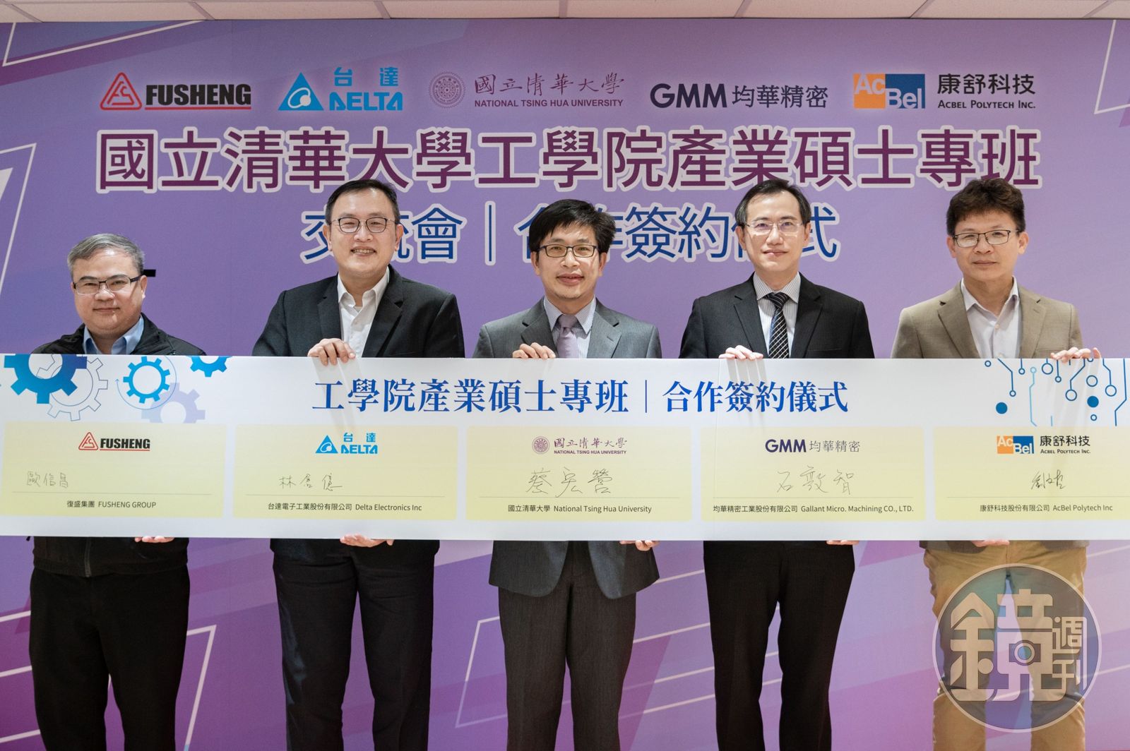 清華大學工學院於明年8月開始,將開設3個產業碩士專班,包括為台達電子及均華精密開設的「AI智慧製造與智慧物聯網」專班,為康舒科技開設的「電動載具先進智慧製造技術」專班,及為復盛集團開設的「流體機械暨先進材料與智慧檢測」專班,共招收18位碩士生。於昨(9日)簽約並舉辦招生說明。