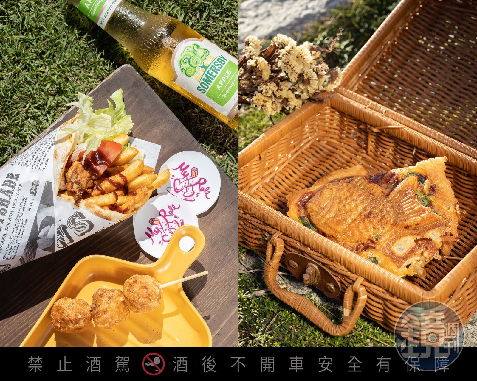 小琉球「My Roll賣肉」專賣充滿異國風味的土耳其烤餅,「帕瑪森雞肉烤餅」能吃到濃郁起司與脆口餅皮,套餐還可搭配飲品與花枝丸。(305元/份)在My Roll賣肉可挑選一塊喜歡的野餐墊,在草地上席地而坐品嘗烤餅,非常愜意。「烤雞脆薯巨巨捲」包入口感鮮嫩的雞腿肉與炸得酥脆的金黃薯條。(套餐295元/份)在餅皮內包入帕瑪森起司、雙色切達起司、手醃雞肉、洋蔥、番茄、生菜的「帕瑪森雞肉烤餅」,將外層餅皮烤到焦香脆口,內裡的起司完全融化,我大口咬下烤餅,真是邪惡又美味的組合。鋪上充滿中東風情的野餐墊,在草地上席地而坐,望著眼前大福漁港的藍天、漁船與綠地,用餐時光霎時無比愜意。