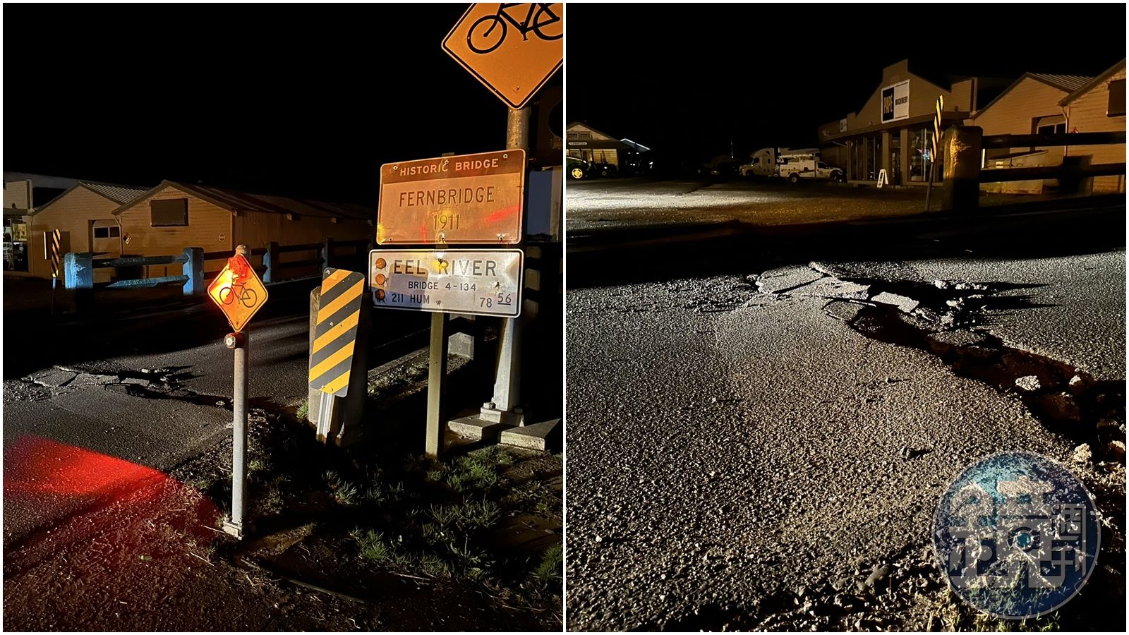 芬岱爾通往尤里卡的主要幹道在地震後出現裂縫而遭到關閉。(翻攝自推特@AustinCastroTV)發布時間:2022.12.21 13:45 臺北時間