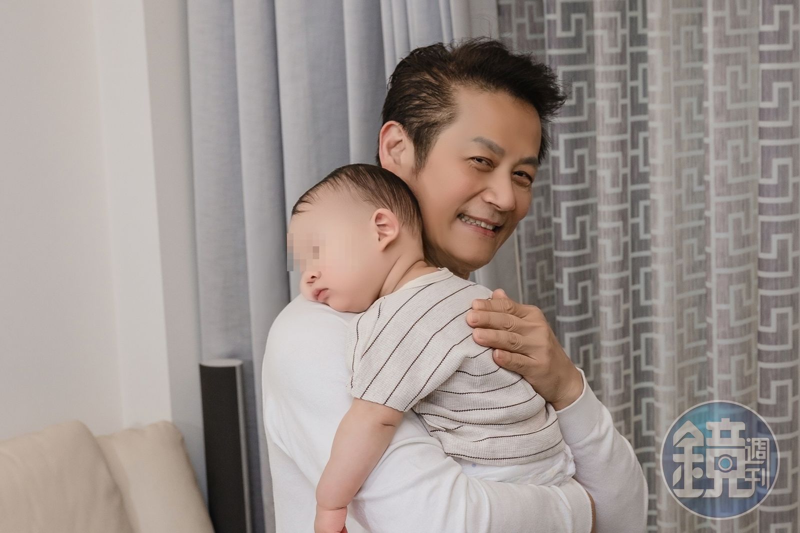 徐乃麟(左)哄孫有一套,孫子在他懷中放心沉睡。(艾迪昇傳播提供)