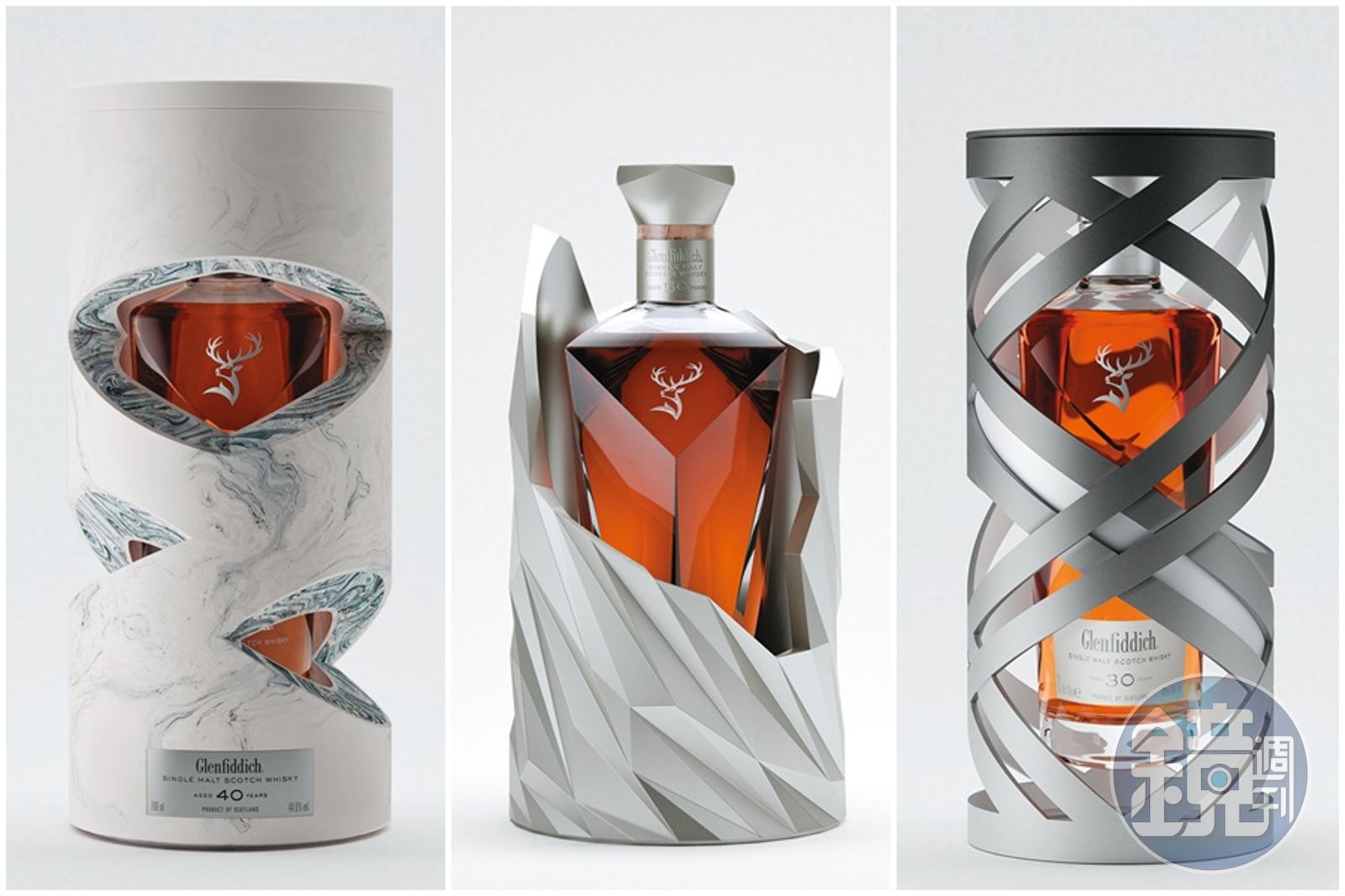 左至右分別為「時間的軌跡」格蘭菲迪40年、「時間的答案」格蘭菲迪50年、「時間的刻度」格蘭菲迪30年。發布時間:2022.12.30 05:58 臺北時間