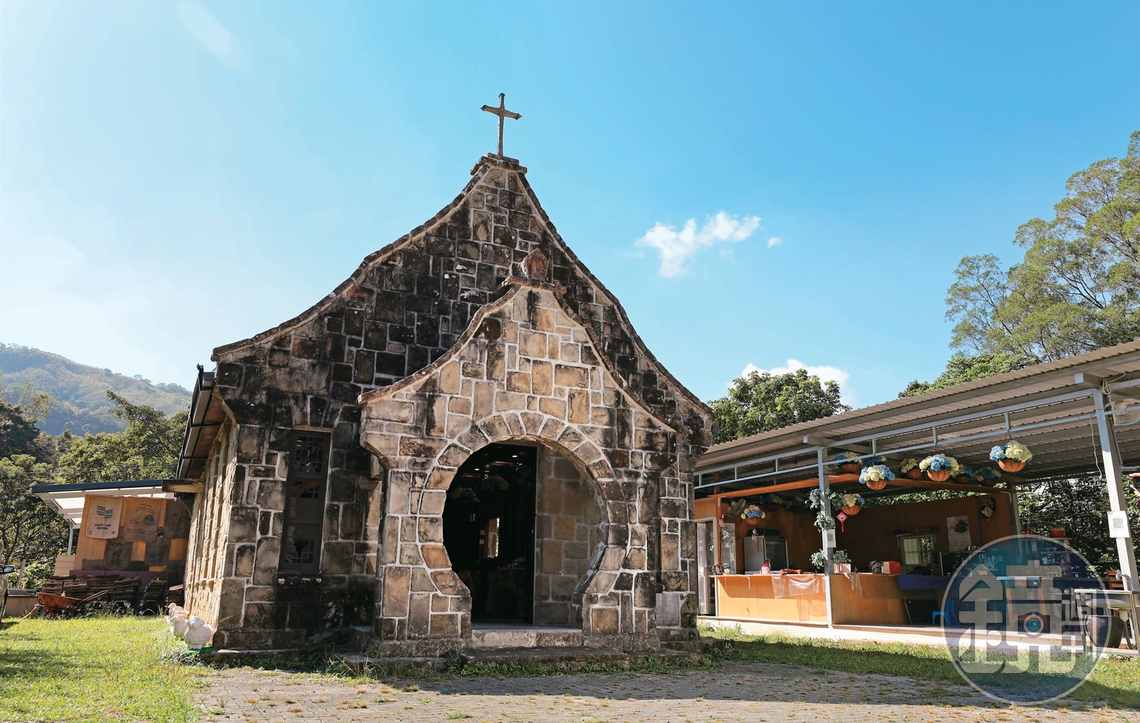 沿著基國派產業道路旁石板小徑筆直前進,盡頭處的平台矗立著一座由石塊疊砌而成的教堂,天氣晴朗時,教堂與清澈透亮的藍天,構築一幅絕世美景。這座古色古香的教堂,早期為當地部落信仰中心,1947年,基督教長老教會美籍牧師孫雅各與夫人孫理蓮來到角板山地區布道,經過宣教後當地信徒也加入傳教行列,牧師以閩南語傳講,泰雅族信徒再翻譯成族語,讓福音在山林間繚繞不輟。