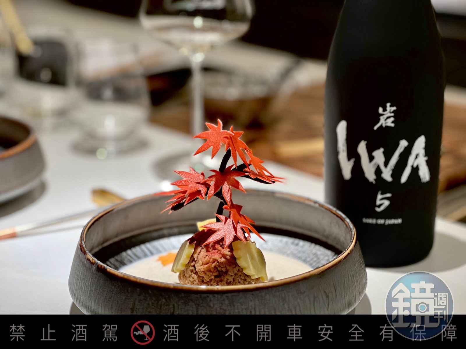 最後通常以魚子醬香檳冰淇淋收尾,不過這次為了IWA5清酒的上市,特別將香檳改成以IWA5做成冰淇淋,米香搭配柚皮的清新與魚子醬的鹹香,讓整個套餐有個圓滿的和風結尾。