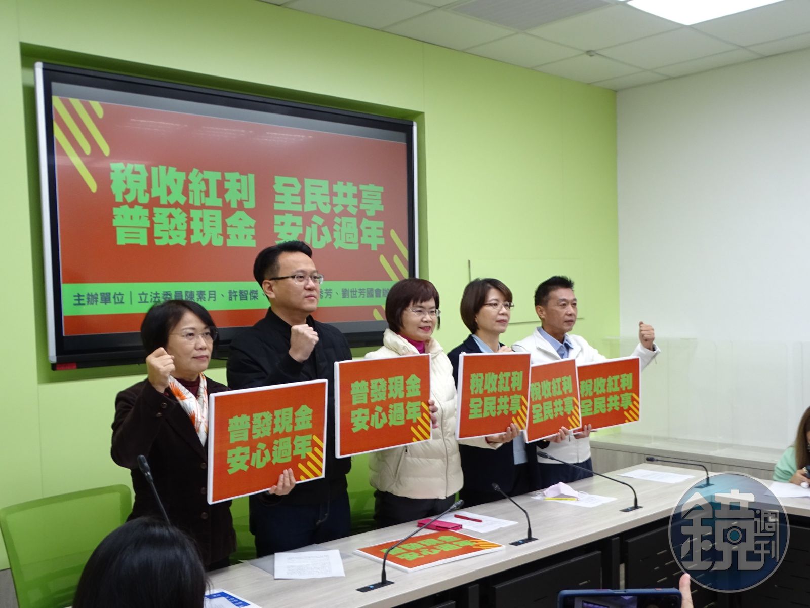 儘管如此,民進黨跨派系多名立委包含劉世芳、許智傑、黃秀芳、莊競程、陳素月今(27日)仍召開記者會,認為政府在疫後時期應加強紓困,呼籲讓全民共享稅收紅利,「普發現金、安心過年」,提出三大主張包括普發現金一萬、加強弱勢照顧、持續產業紓困;但也有綠委不全然認同,例如新系立委郭國文就表示,普發並非真正平等的作法,政府應該更積極去思考如何財富重分配。