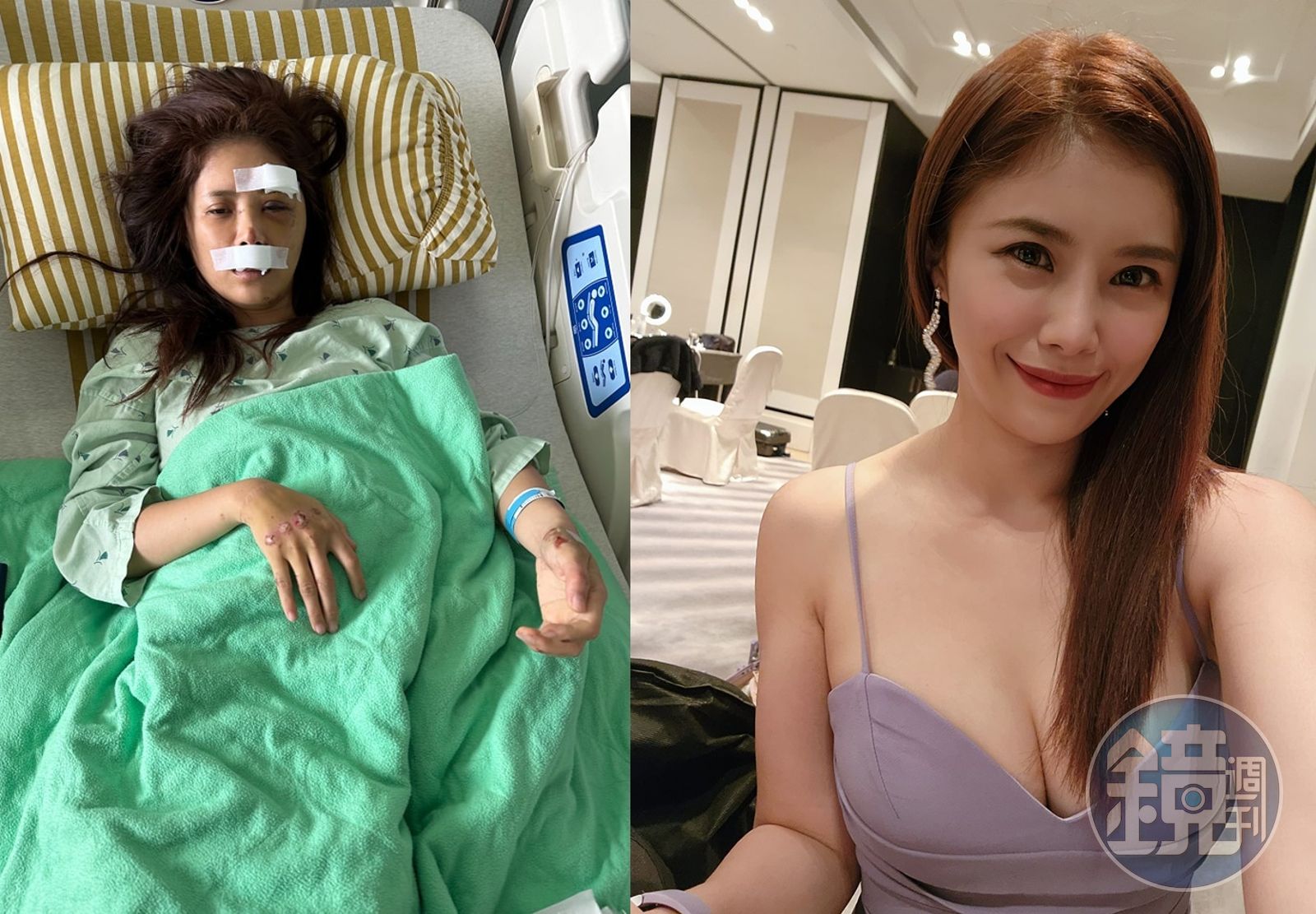 宋燕旻貼出自己的傷勢照,只見她臉腫了一圈,頭部及鼻孔流血躺在病床上。宋燕旻說自己腦震盪、左右蜘蛛膜下腔出血、左側眼眶骨折骨裂、左側顴骨骨折骨裂、雙手擦挫傷、左腳擦傷,前一篇貼文說是「有點嚴重的車禍」,是為了不想讓家人擔心。