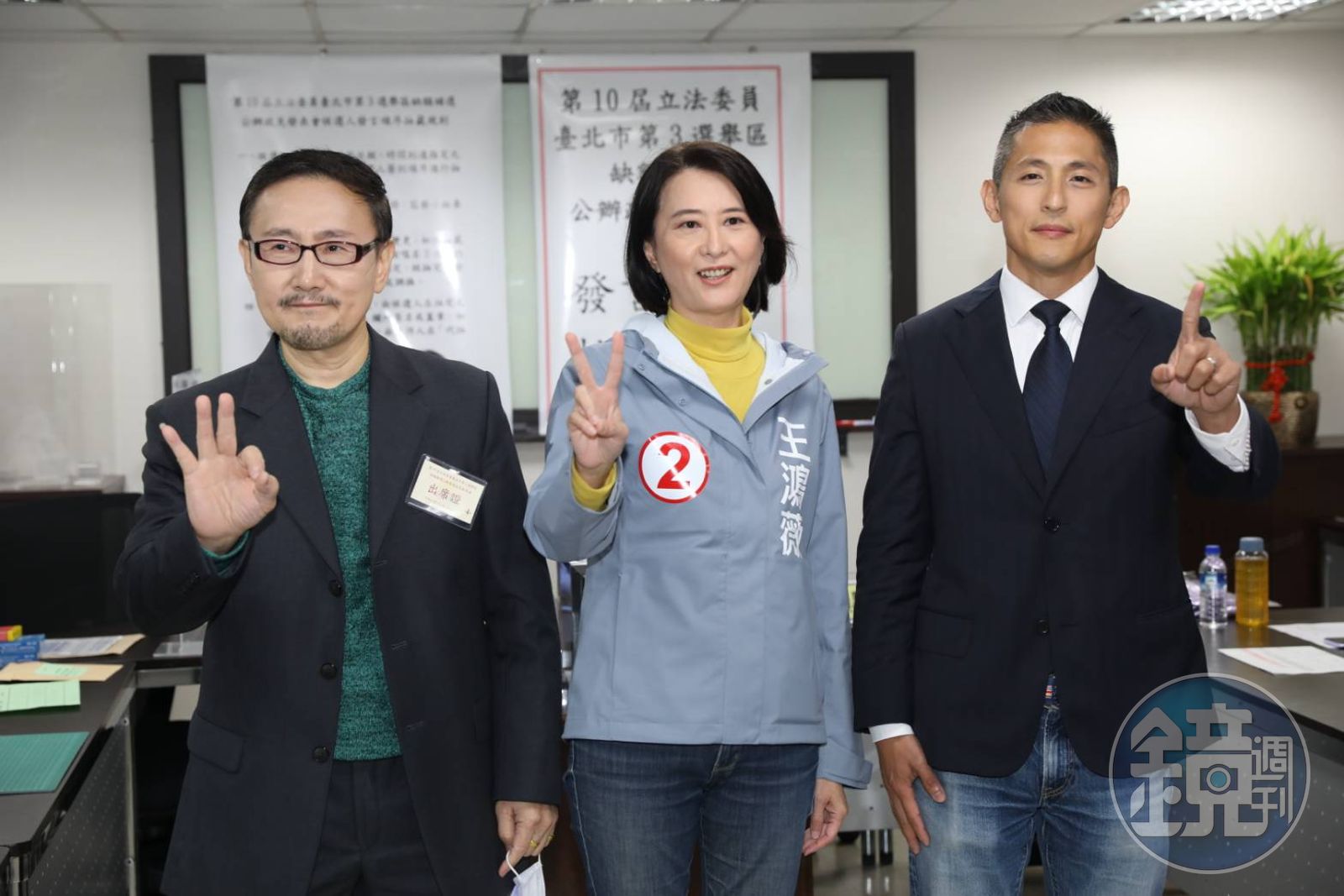 最後上台的3號候選人蕭赫麟,其實原本為民進黨籍,昨才因為違紀參選而遭開除。他上台後舉著印有他肖像和QR Code的看板不發一語,引發討論。