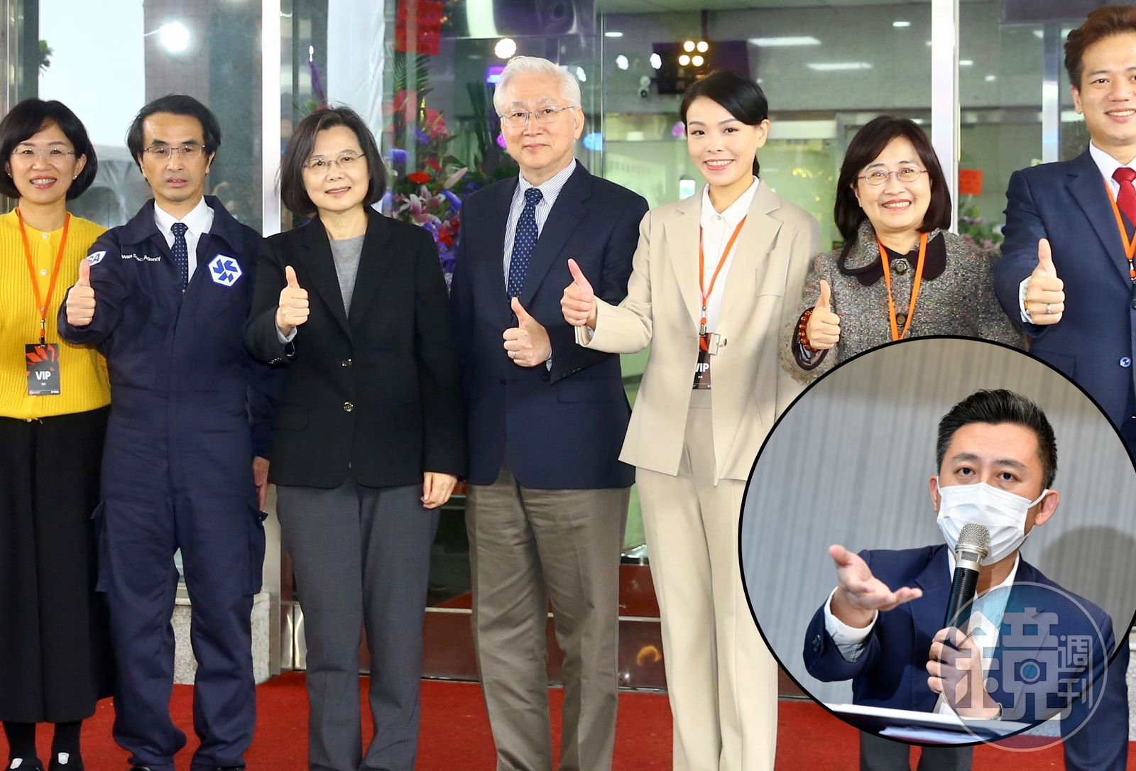 高虹安昨舉行記者會說明新竹棒球場的問題後,今下午出席國家太空中心改制的揭牌典禮,與總統蔡英文同台合照,不過雙方並無太多互動。