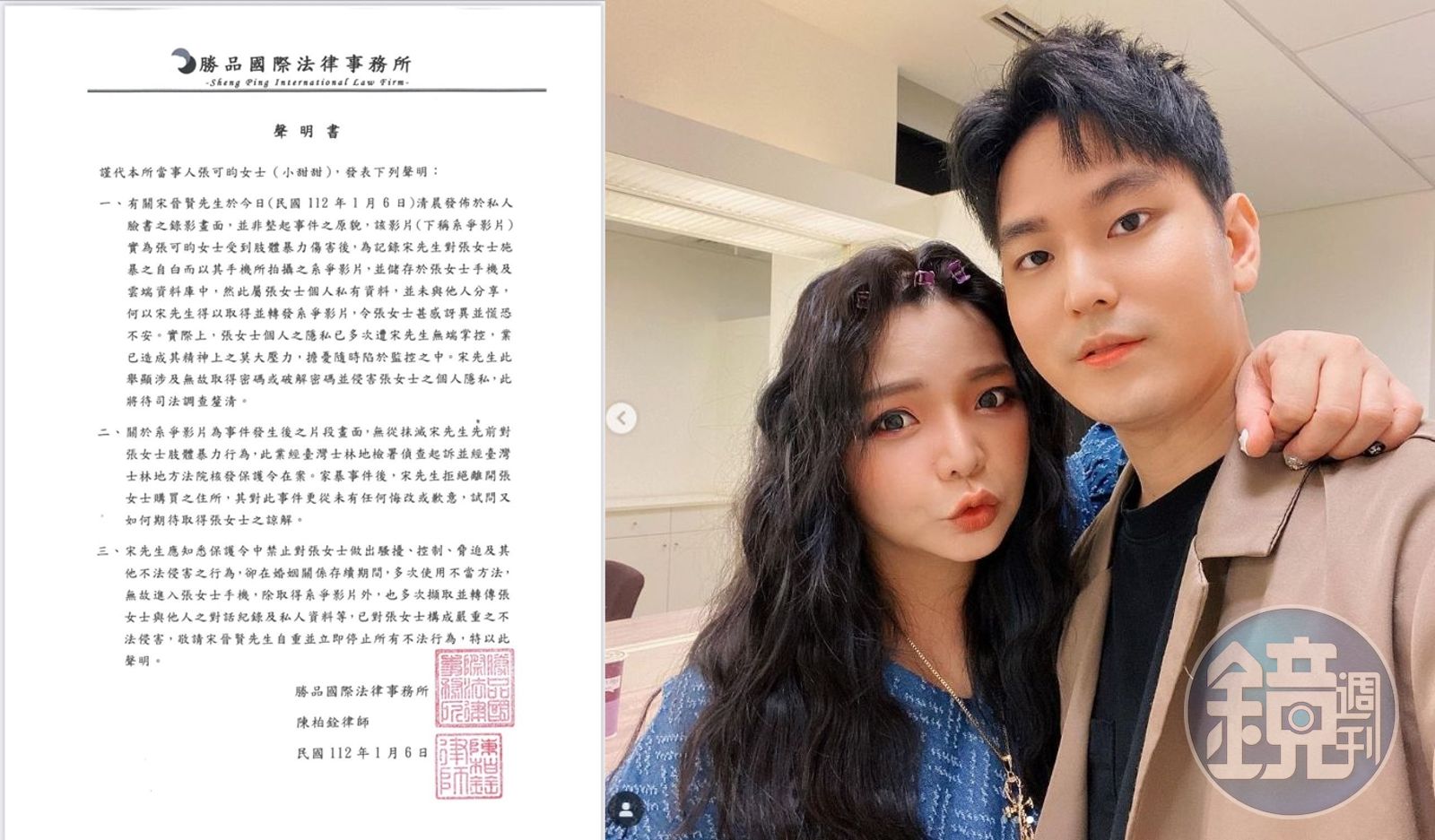 關於「家暴」,小甜甜與老公各說各話;小甜甜貼出法院核發的「馬賽克版」保護令,至於她老公的則是「全見版」,包括法官認定內容寫道「小甜甜先以腳踢方式催促宋男處理家務,惹怒宋男反擊、腳踹小甜甜,而小甜甜也有還手揮拳,事後還不斷踢宋男屁股質問」。