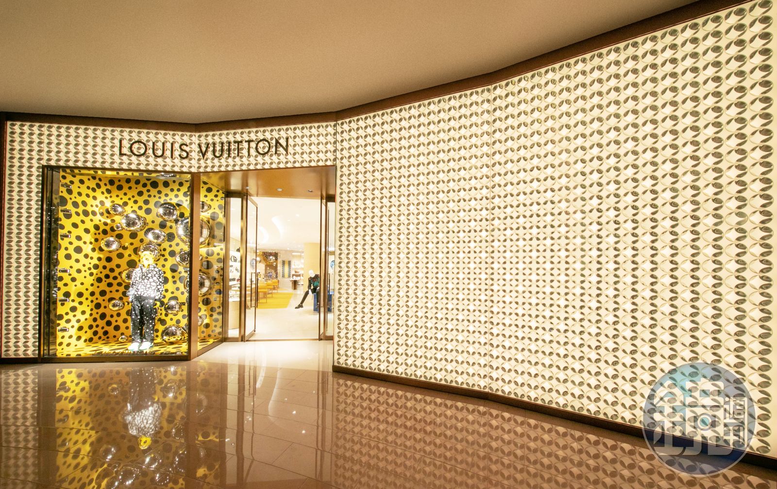 LOUIS VUITTON(路易威登)座落於台北101四、五樓的全新旗艦店今日舉辦盛大開幕儀式,為表慶祝,中庭挑高區與男裝區彩繪上期間限定的黃色迷幻波點藝術裝置,呈獻與日本藝術家草間彌生(Yayoi Kusama)聯名合作系列;店面設計呈現弧形維度,品牌旨在展示每一件藝術品及設計師傢俱,101首賣的聯名商品與獨賣的Vivienne Pineapple吊墜都是亮點。