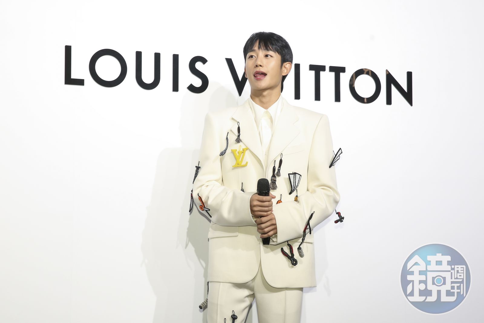 手比愛心的丁海寅,這pose絕對是標配啊!他一開頭就以俏皮的口吻問大家「這套衣服適合我嗎?」,之後善盡嘉賓職責,分享在機場拎著的Keepall包款是LV的經典、更是他喜愛的包款;相隔三年後再度來台,他表示「自己非常高興,每次來台灣大家都很歡迎我,覺得非常感謝」,他細數過往來台灣兩次的經驗分別是辦粉絲見面會、出席2019年的金鐘獎,他說:「每一次來台灣都有好事情,很希望2023年能再來辦第二次的粉絲見面會」。