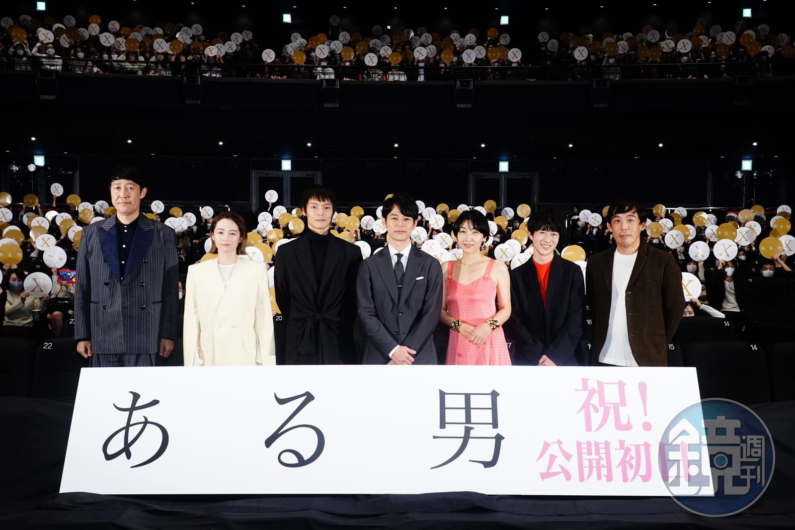 石川慶導演(右)率領妻夫木聰(中)等《那個男人》主要演員前進日本戲院宣傳。(政駒提供)©2022 "A Man" Film Partners發布時間:2023.01.12 05:58 臺北時間