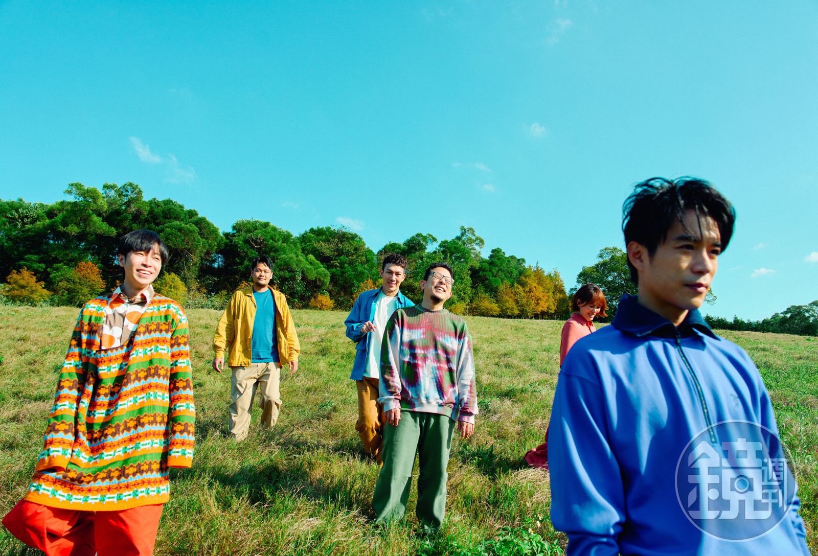 魚丁糸投入2月的演唱會彩排,也持續進行復刻計畫。(環球音樂提供)為了這兩張復刻作品,魚丁糸特別到苗栗祕境「南窩綠丘」取景,之前,青峰曾到這裡拍廣告代言,民宿老闆甚至直接把一棵樹取名「青峰樹」,成為當地旅遊熱門打卡景點。拍攝當天氣候宜人,團員們在草原上相互依偎著,大家還貼心幫阿福遮肥肚,展現6人一路走來始終如一的「黏TT」好感情。